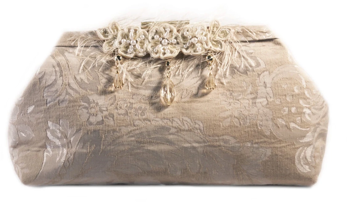 The process of creation is what truly inspires me. I often use vintage necklaces to craft unique purse straps and add other special embellishments to each piece. Sometimes I design a purse inspired by existing jewelry, and other times I create a matching piece of jewelry to go with the purse. My early attempts were based on a sewn template, but I found myself constantly struggling with balance. This challenge led me to innovate. I developed my own signature no-sew, hard-shell method, which ensures every purse is always perfectly symmetrical.