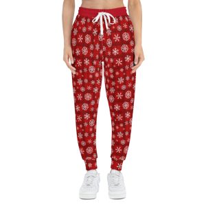 Holiday Cheer Red Tartan Snowflake Athletic Joggers (AOP)