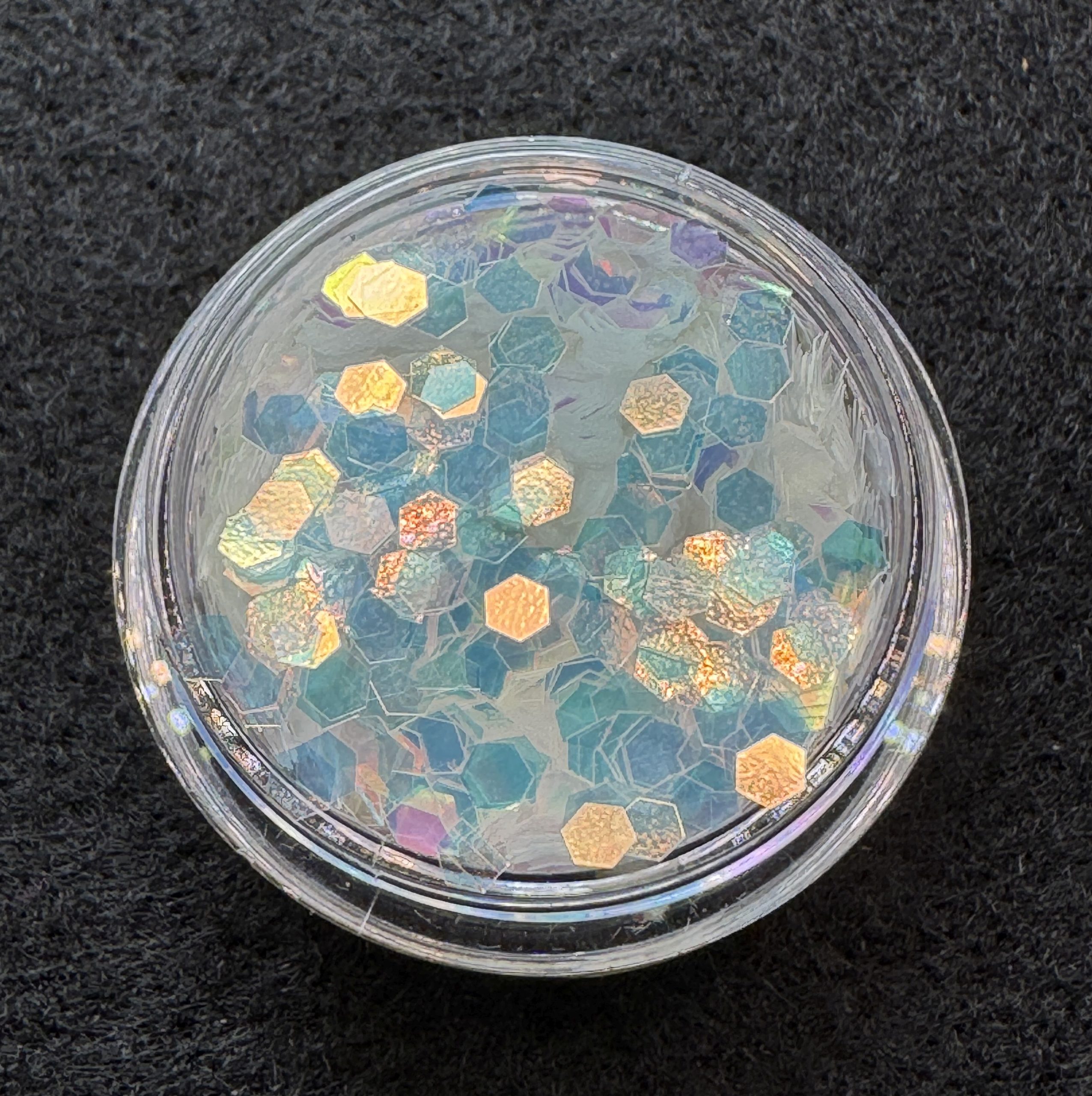 This glitter is a high-quality, durable glitter that is UV resistant to prevent fading, making it perfect for a wide range of craft applications. Made from non-toxic PET (polyethylene terephthalate), it is ideal for use in resin art and various DIY projects. This product is not intended for cosmetic use. Clump Free.