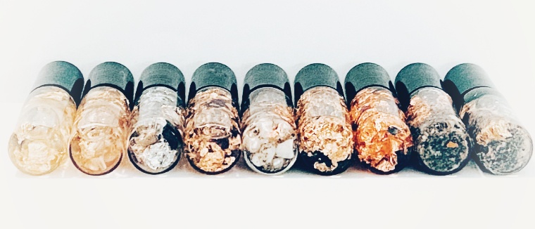 | OGR - Infusions | Beach Sand, Emerald, raw, Freshwater Pearls, Jelly Opal, Oregon, raw, Mother of Pearl, chips, Quartz, raw, Ruby, raw, Sea Shells |