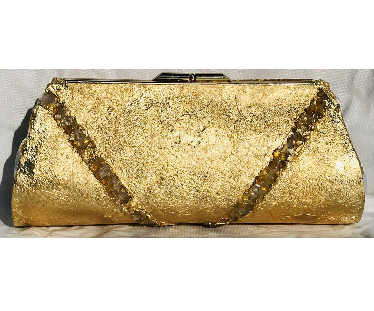 I used genuine gold plating and genuine chunks of Oregon Opal to create this lovely purse.