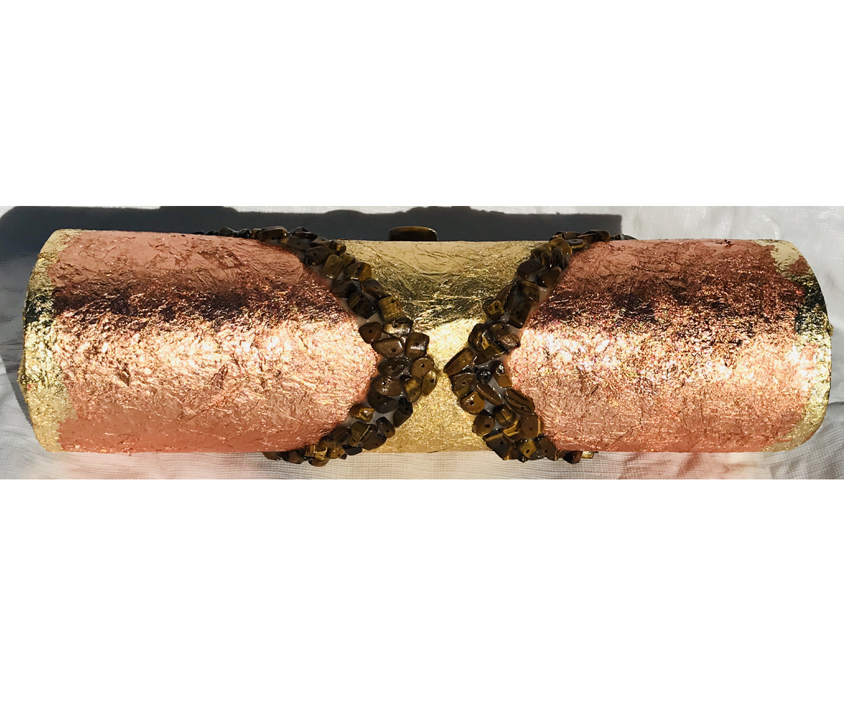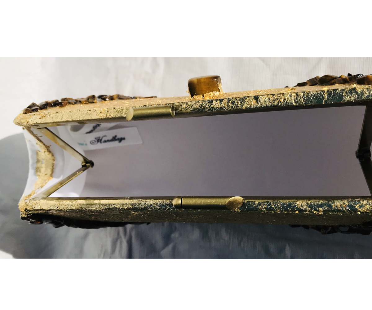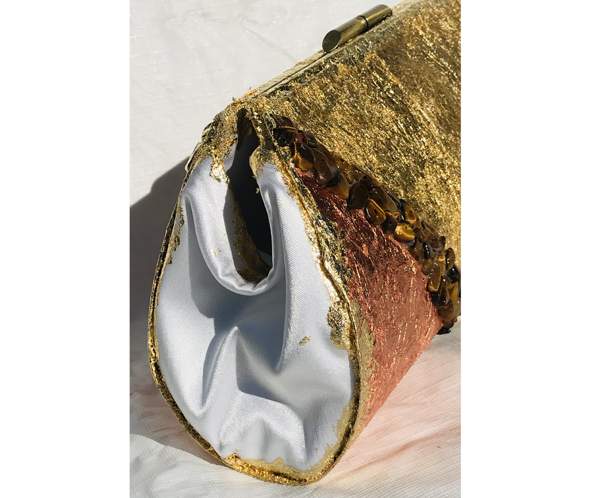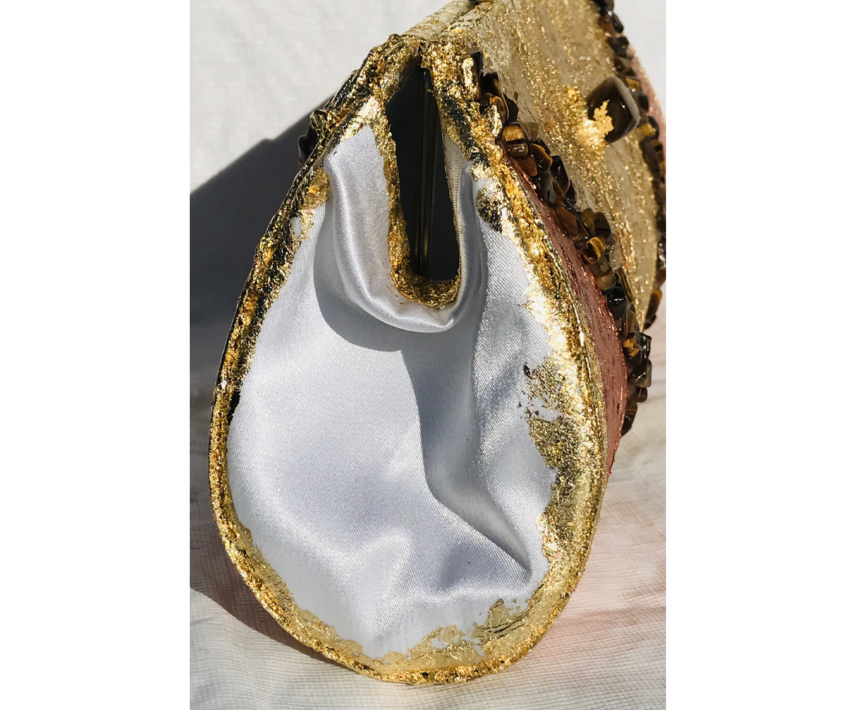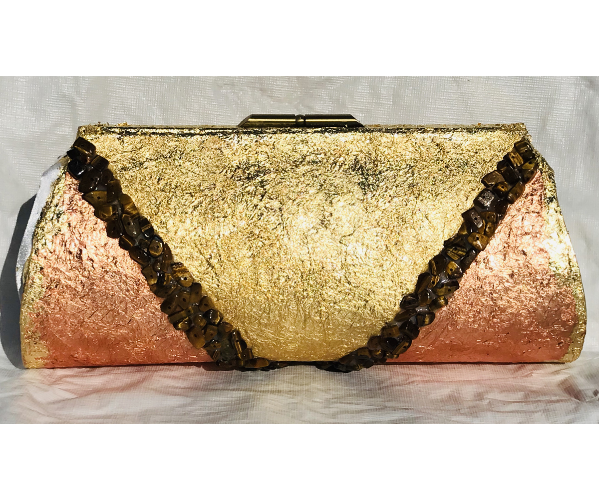 I used genuine gold and copper plating and genuine Tiger’s Eye to create this lovely purse.