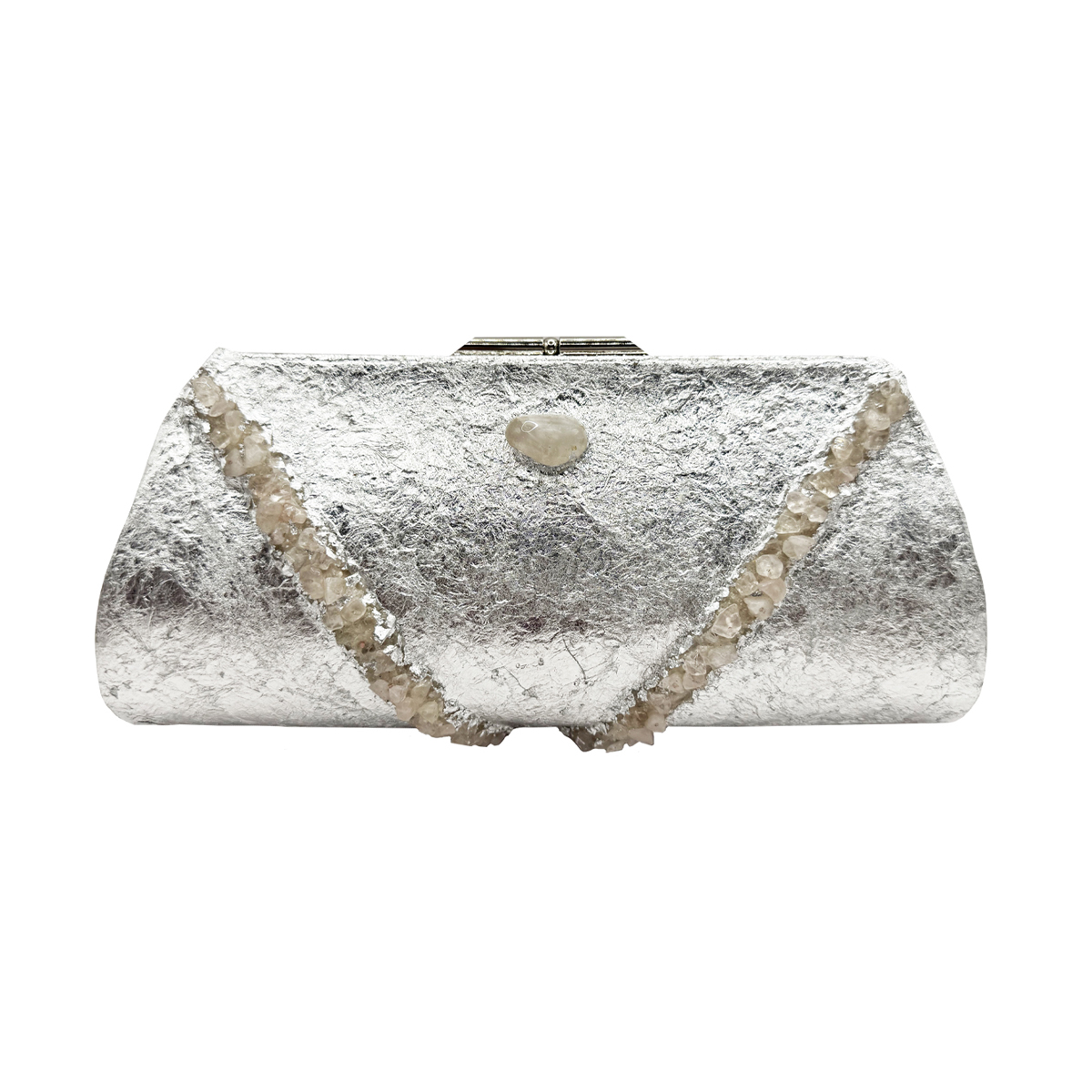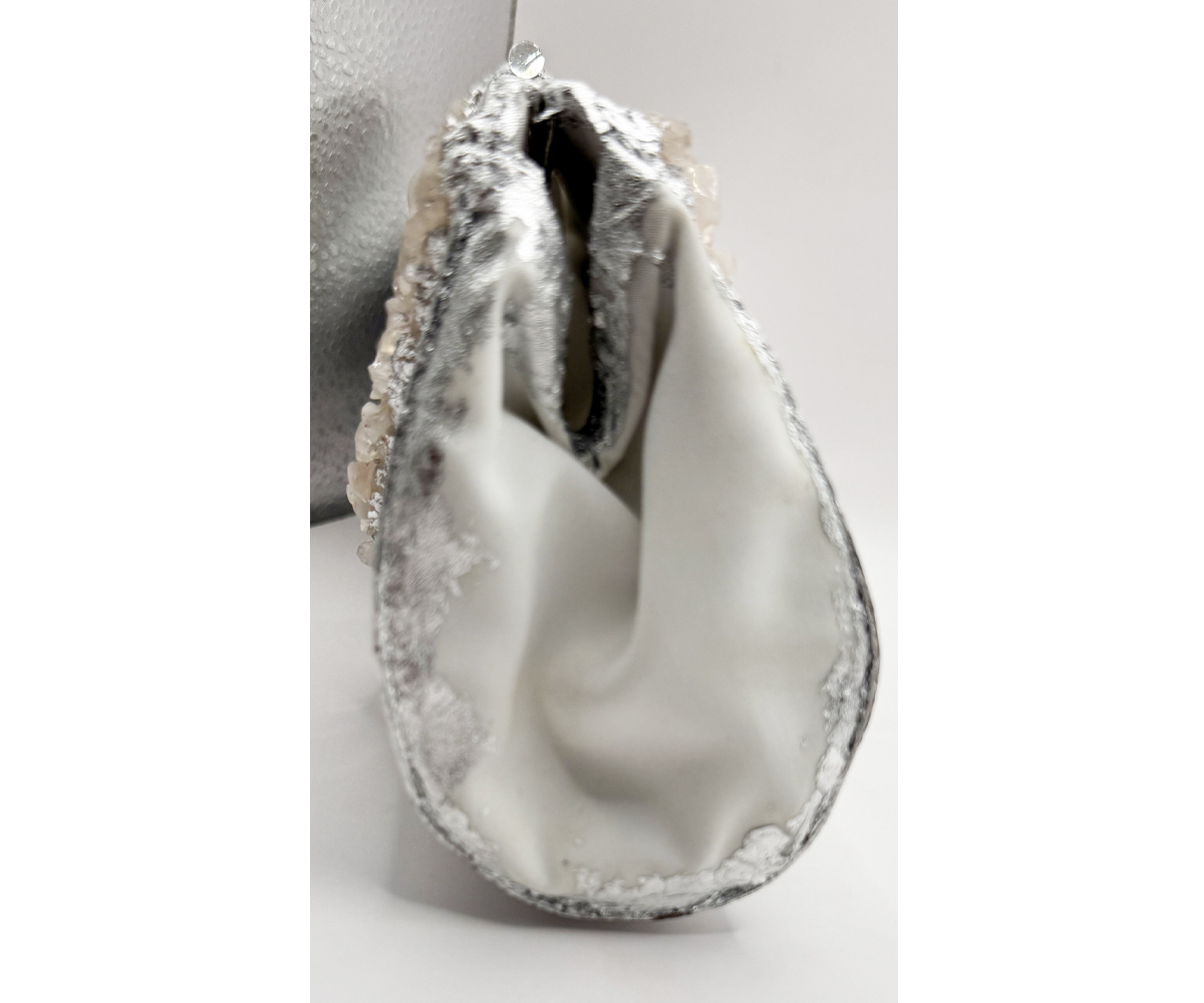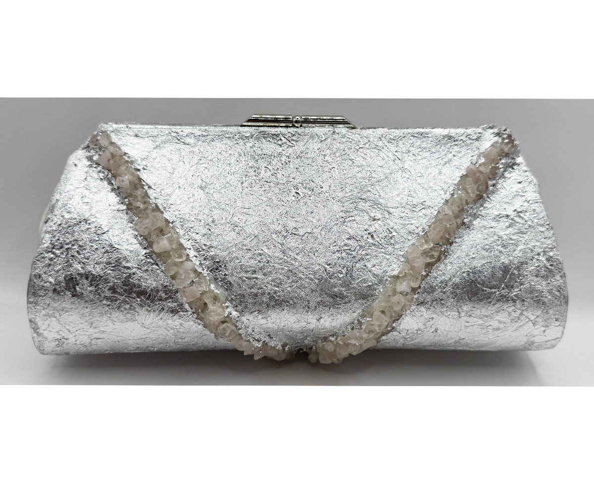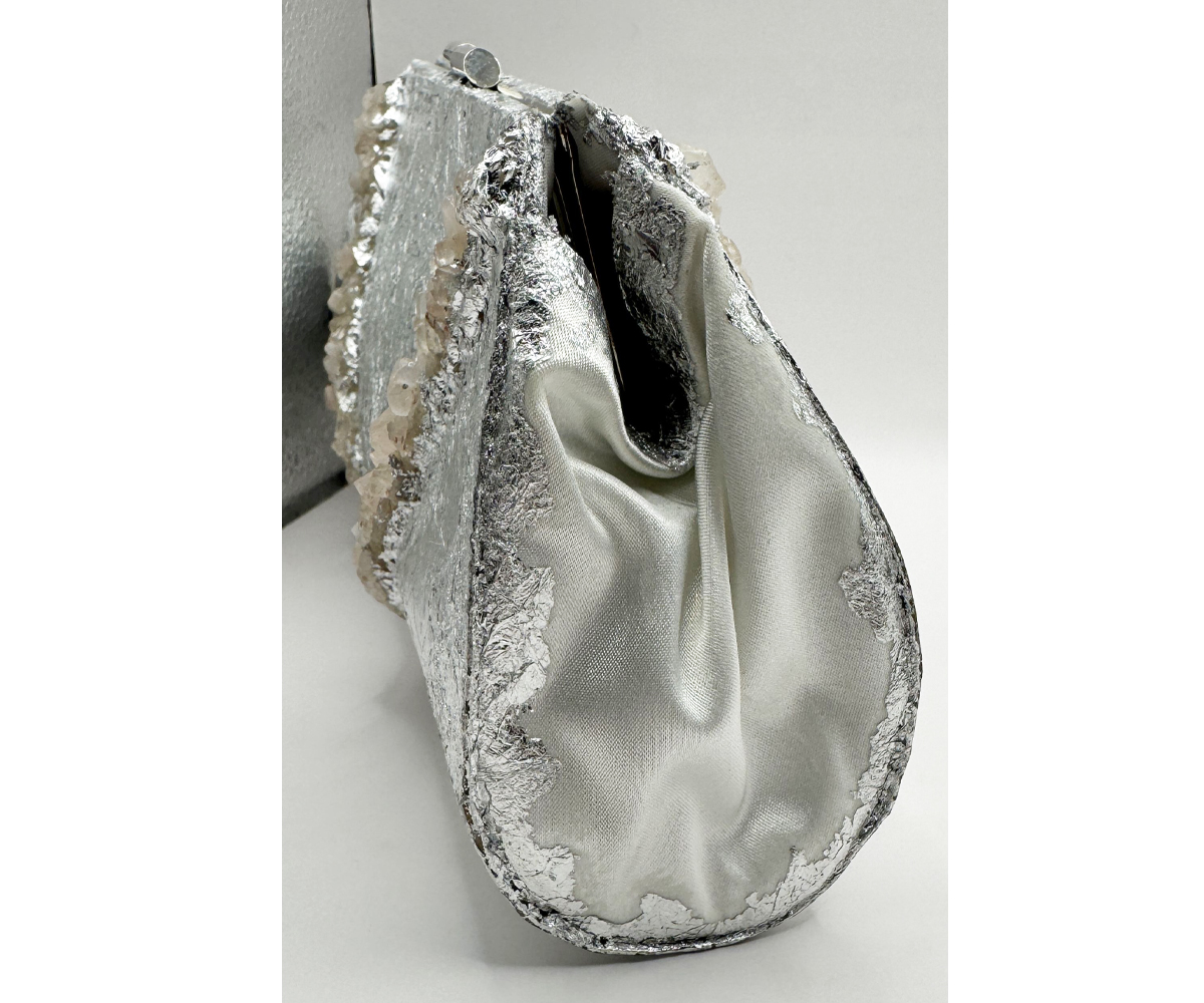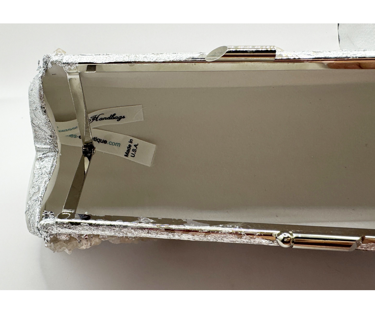 I used genuine sterling silver plating and genuine chunks of raw Rose Quartz to create this lovely purse.