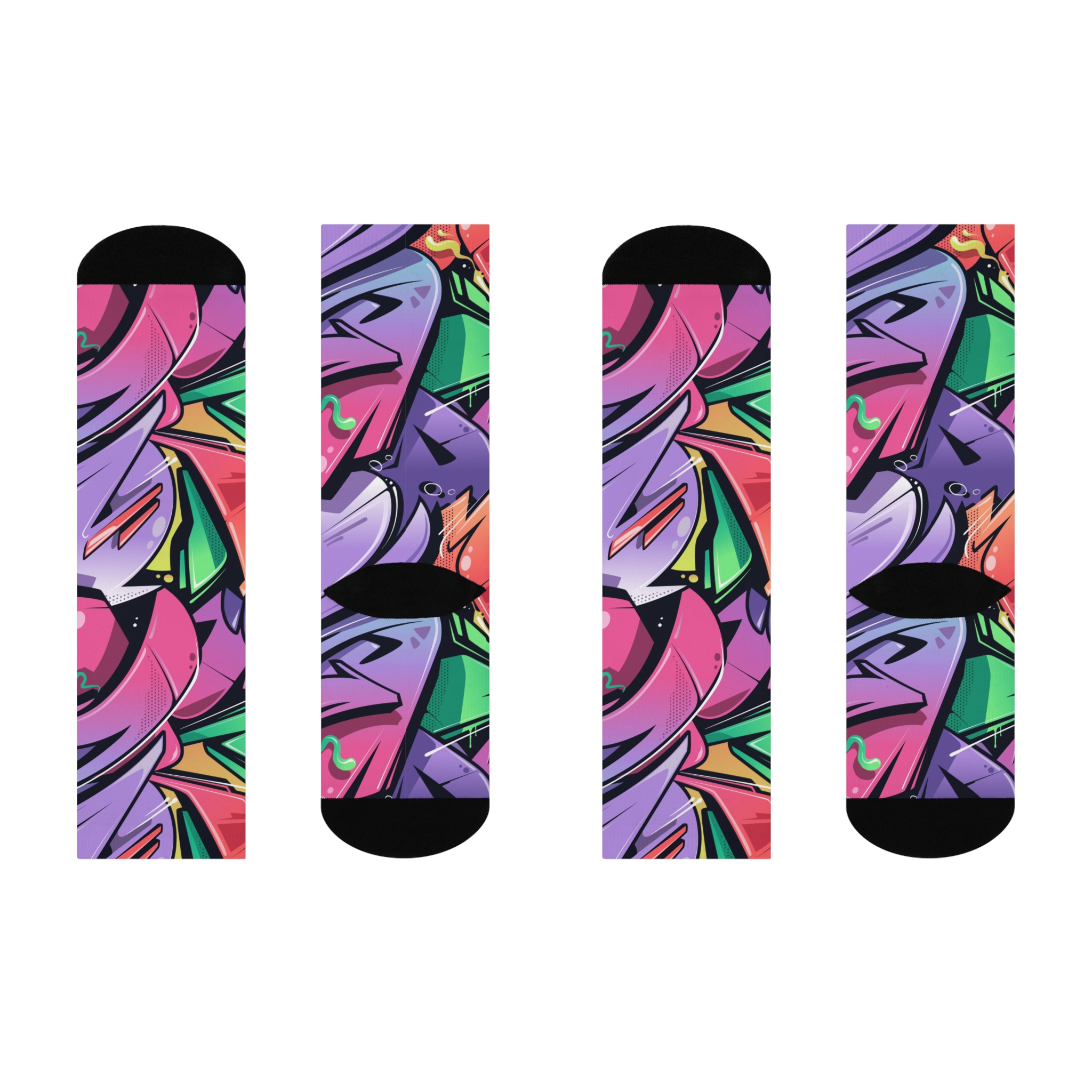 These cushioned DTG crew socks are a one-size style designed with both function and appearance in mind. With the fully cushioned heel-to-toe, these socks provide superior comfort, while the DTG print process allows for ultra-crisp, crease-free printing. Composed of 73% polyester, 18% nylon, 6% spandex, and 3% cotton, these socks are an elevated alternative to the typical sublimation sock and provide a clean, comfortable base for your all-over print designs.
