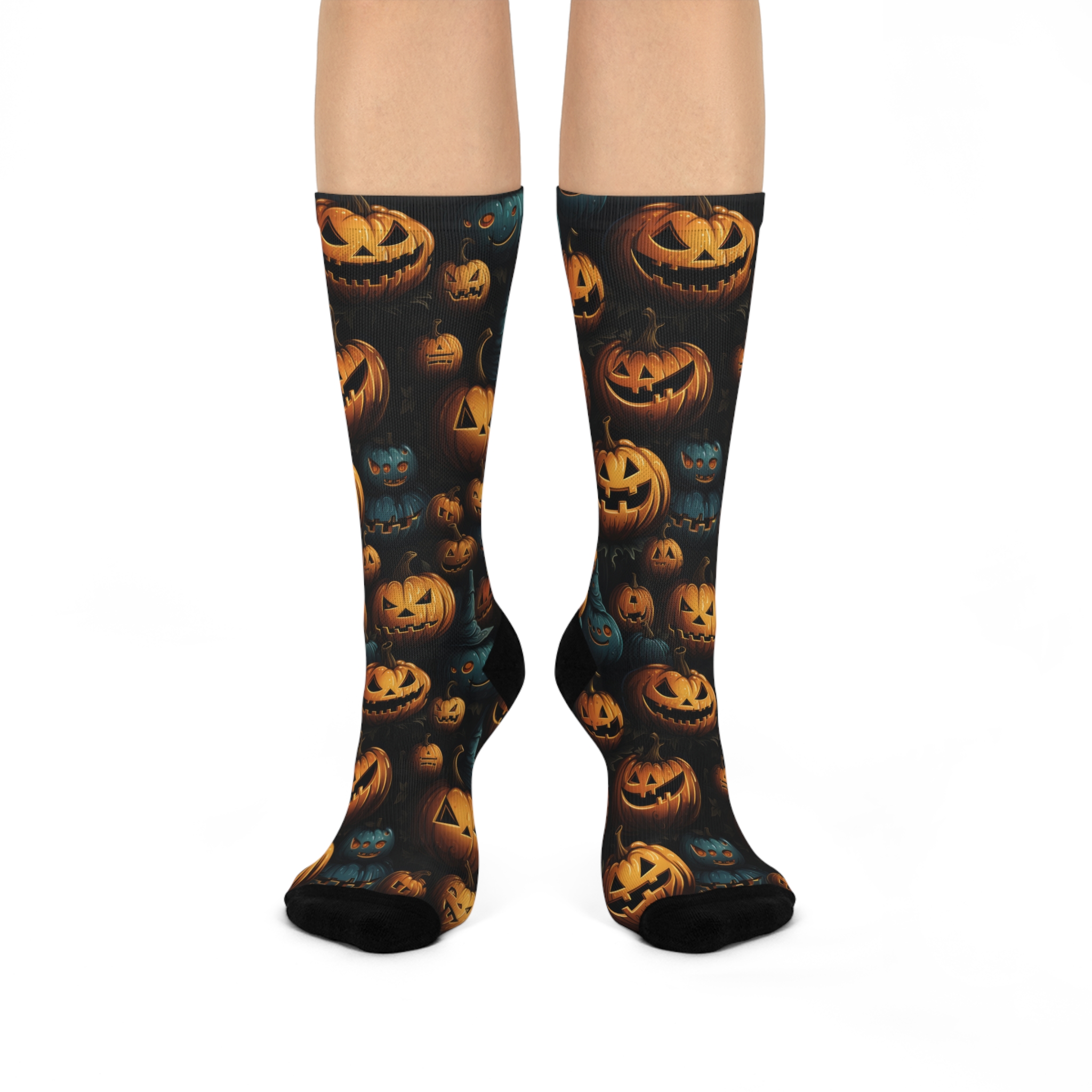 Witchy Night Blue & Orange Pumpkin Cushioned Crew Socks