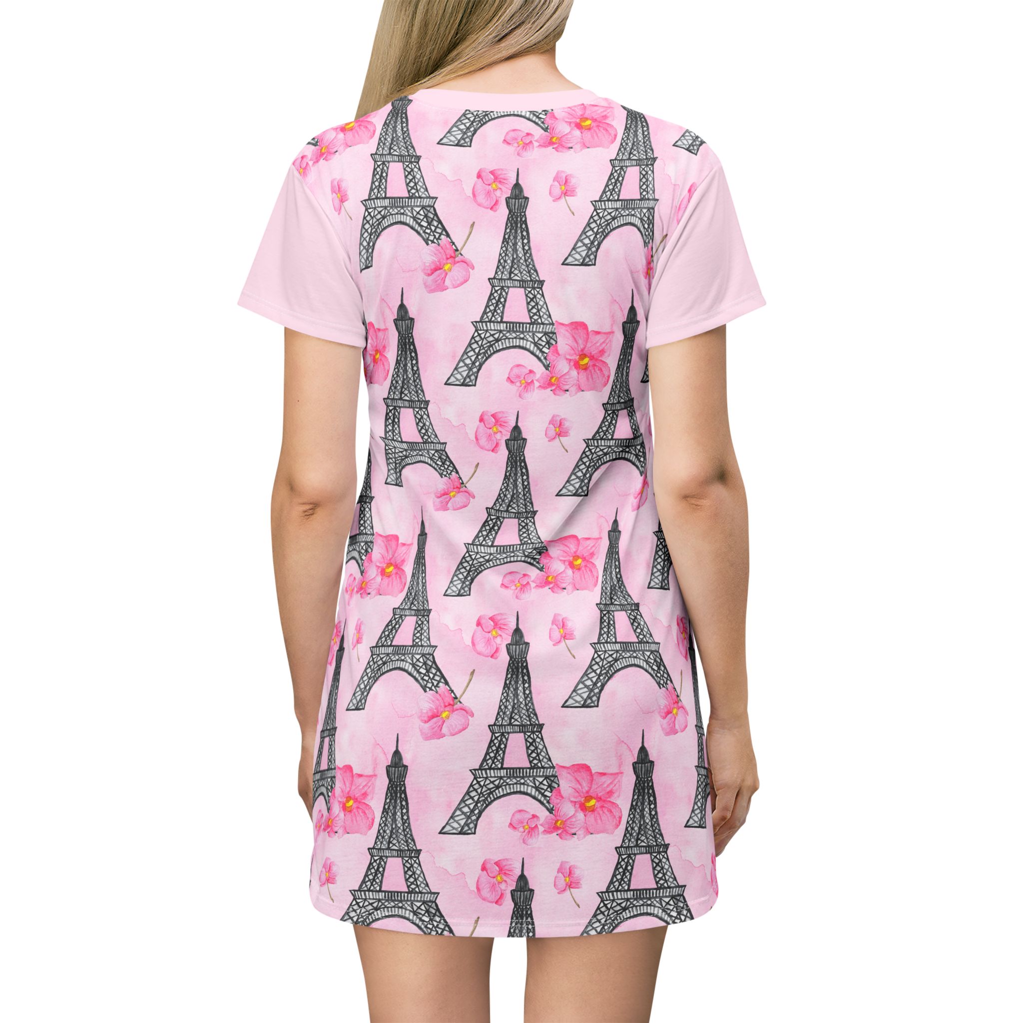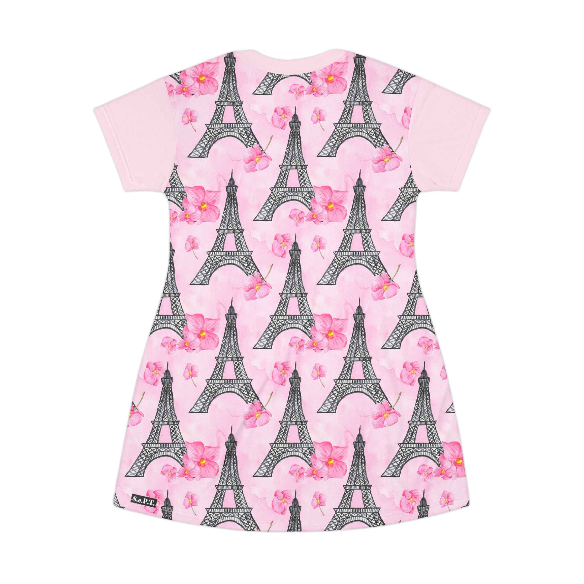 Parisian Eiffel Tower & Pink Floral T-Shirt Dress (S.e.P.T.™)