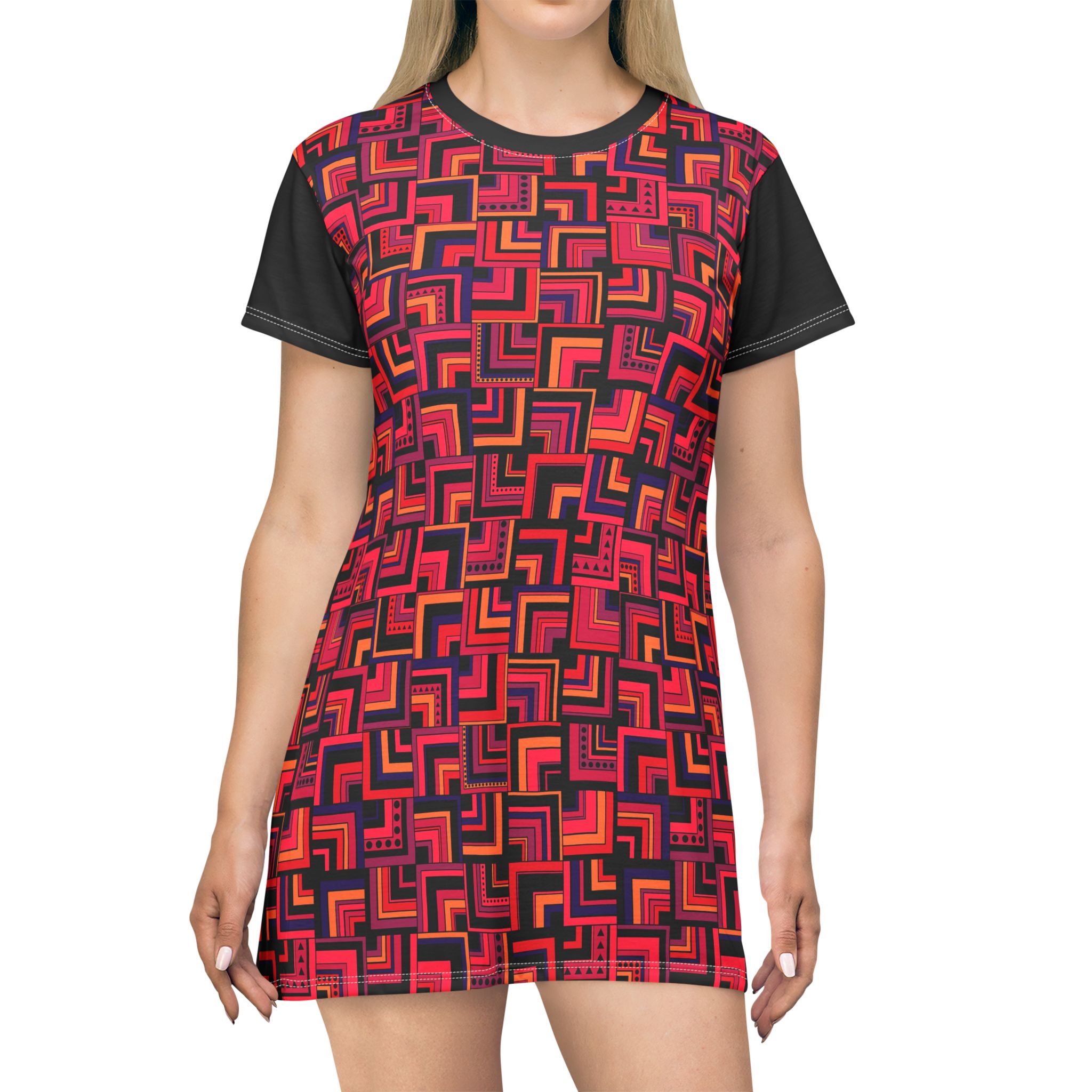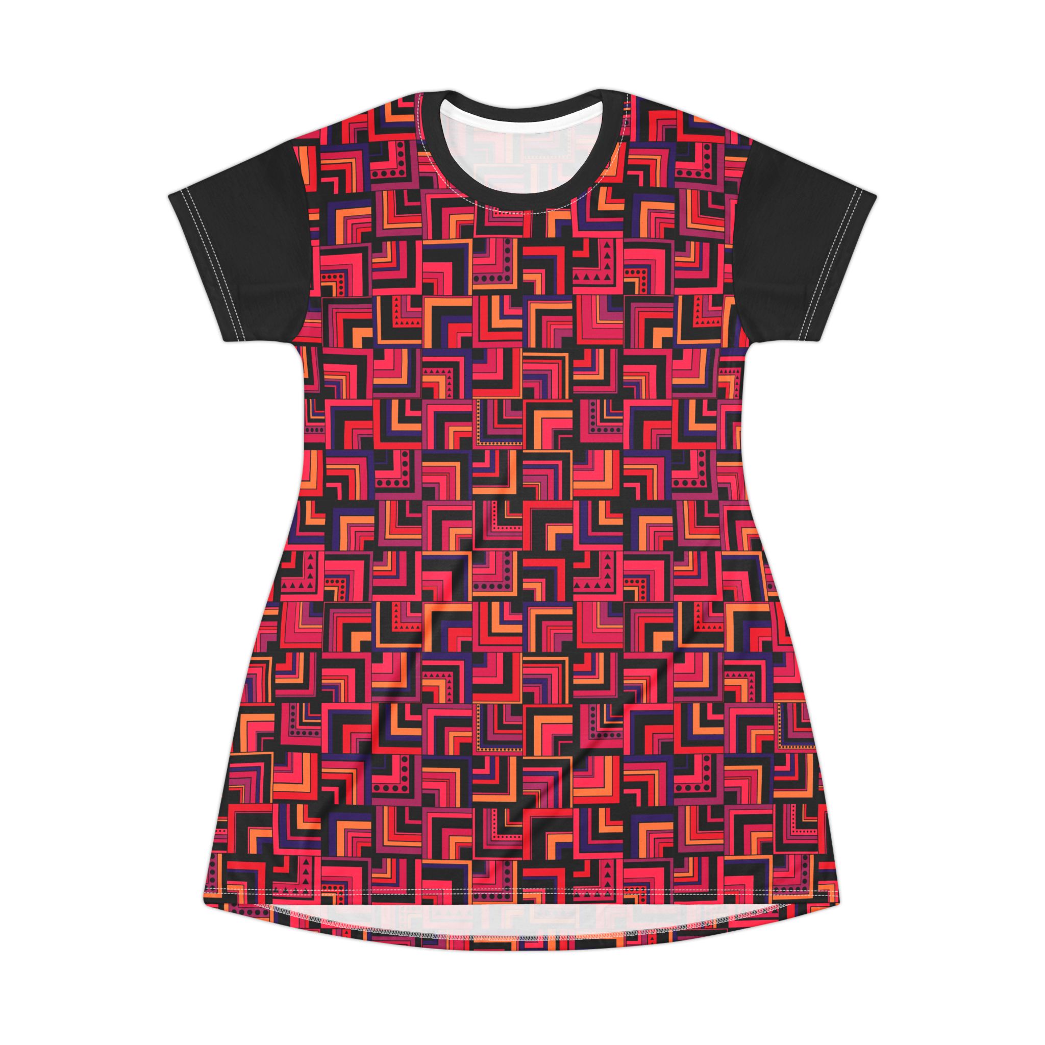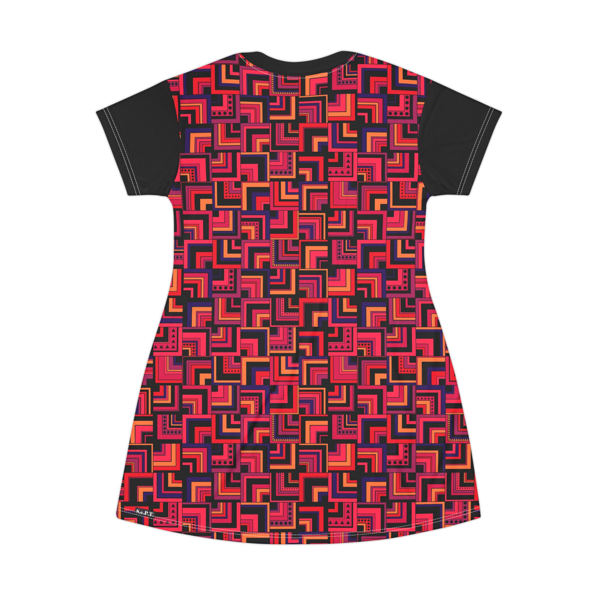 Red Retro Corner Block Geometric Print T-Shirt Dress (S.e.P.T.™)