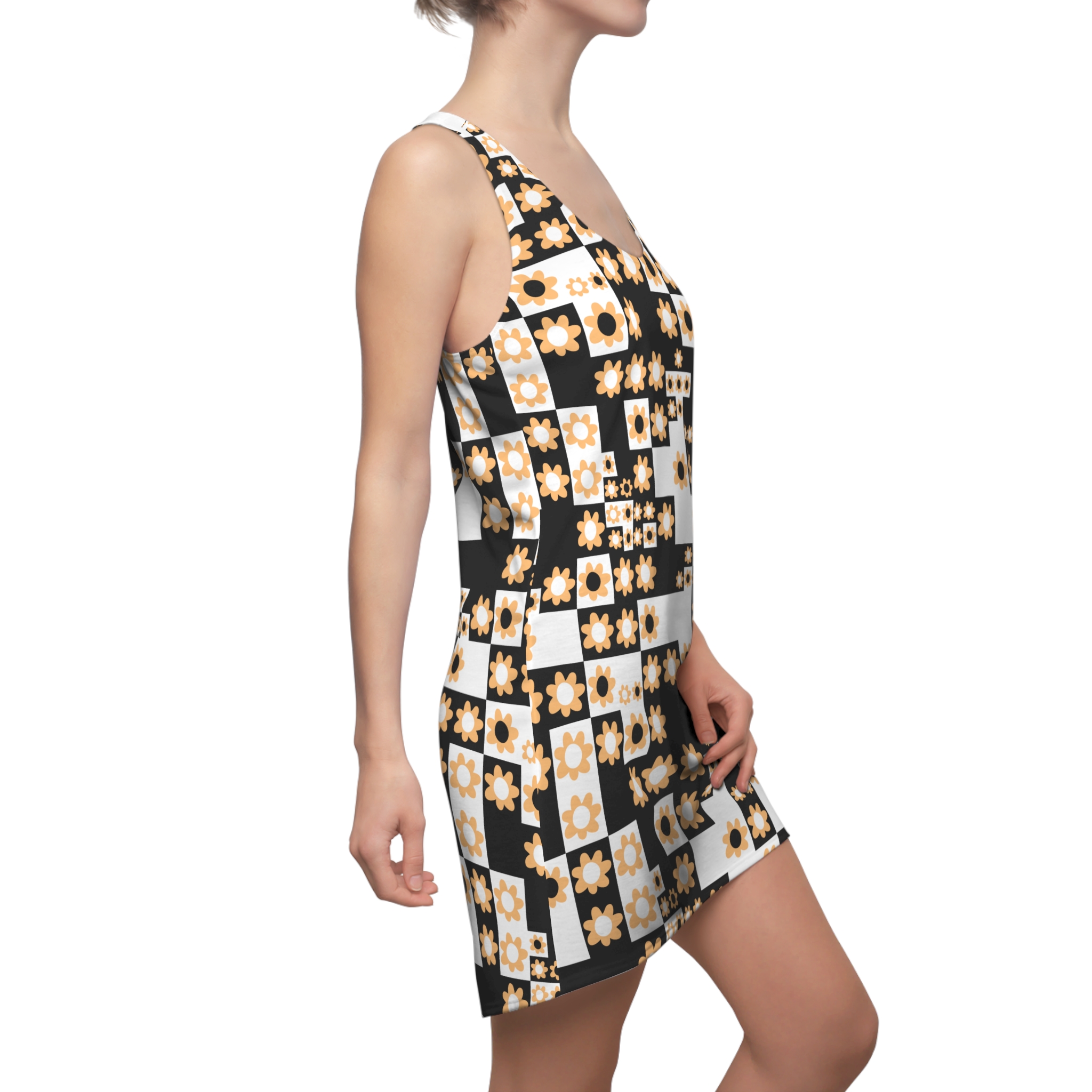 Retro Black & White Optical Flower Print Women’s Racerback Dress (S.e.P.T.™)