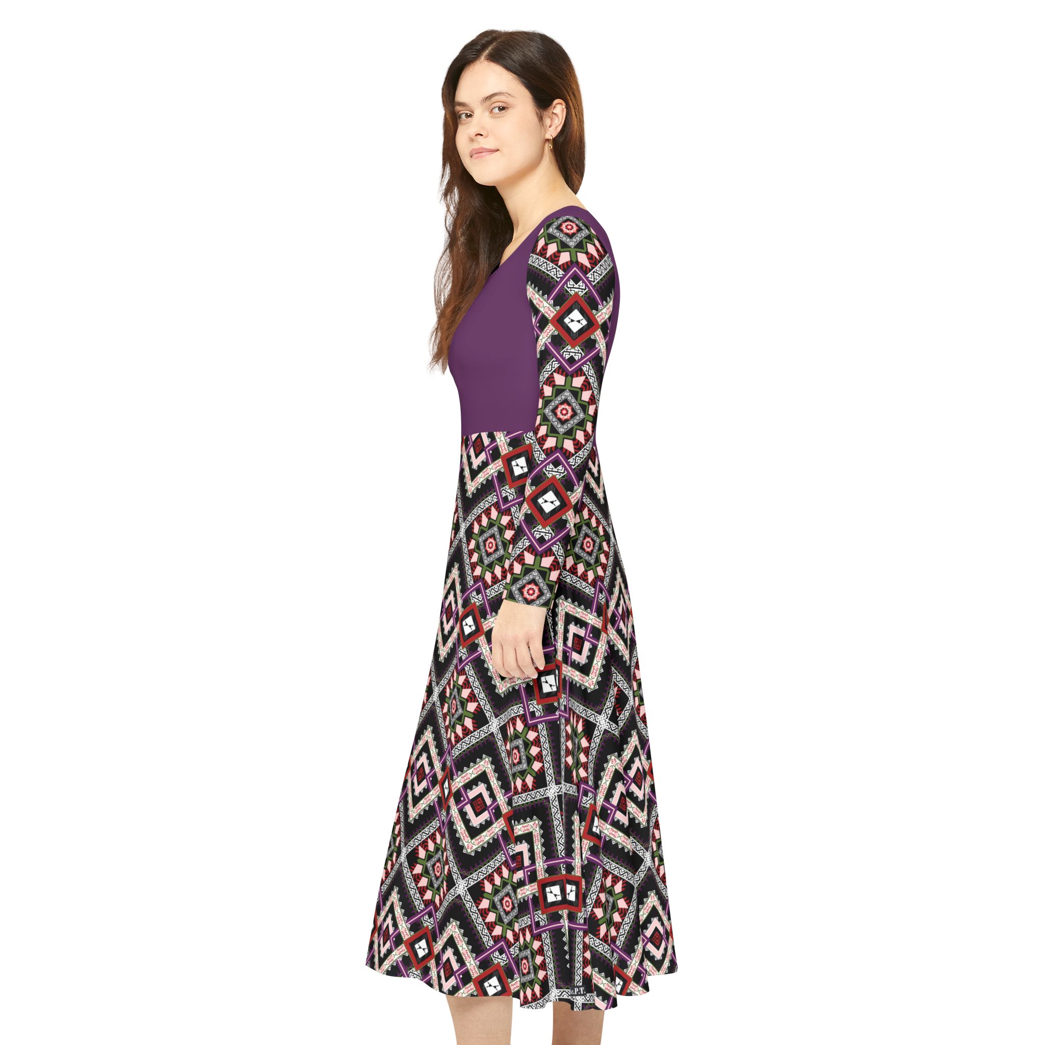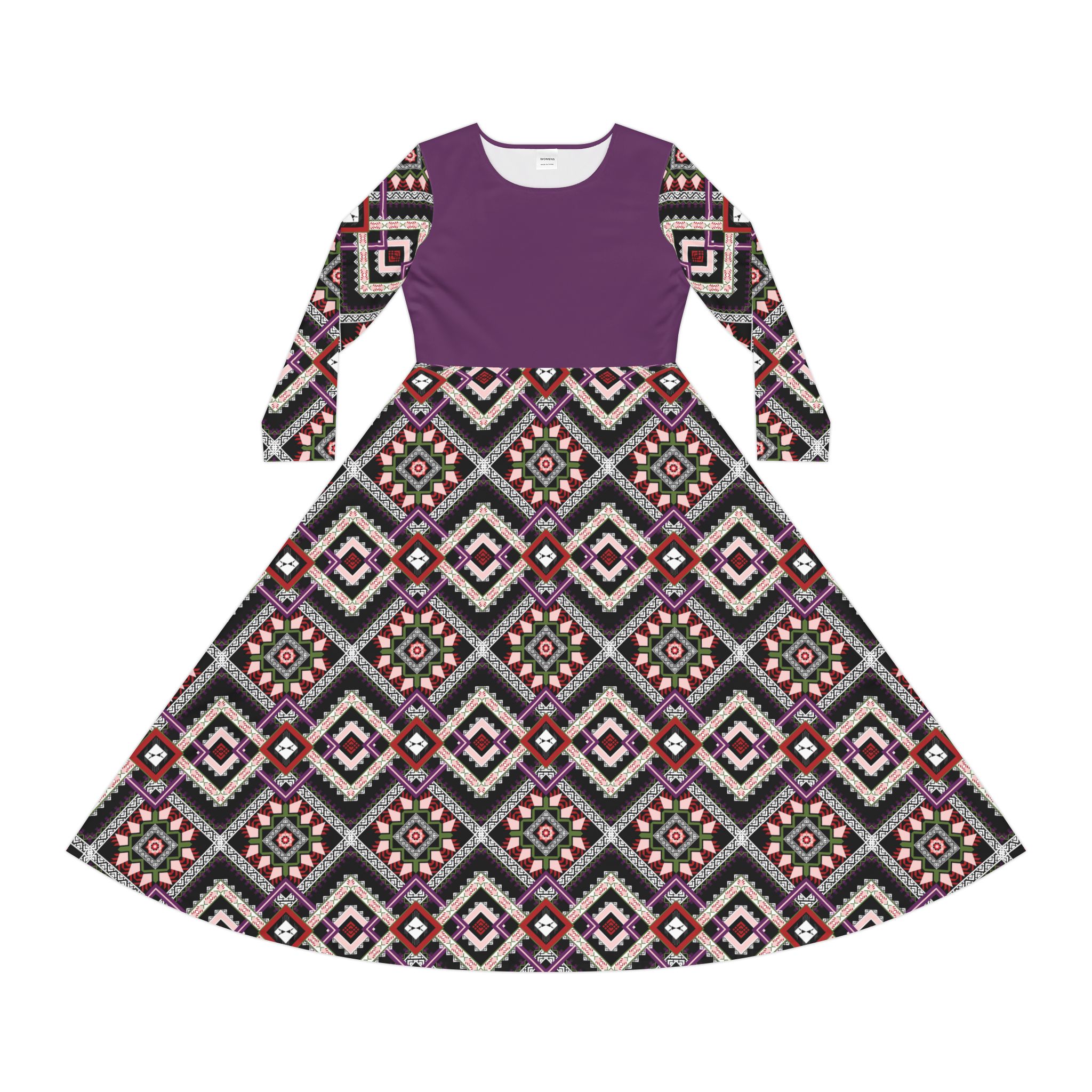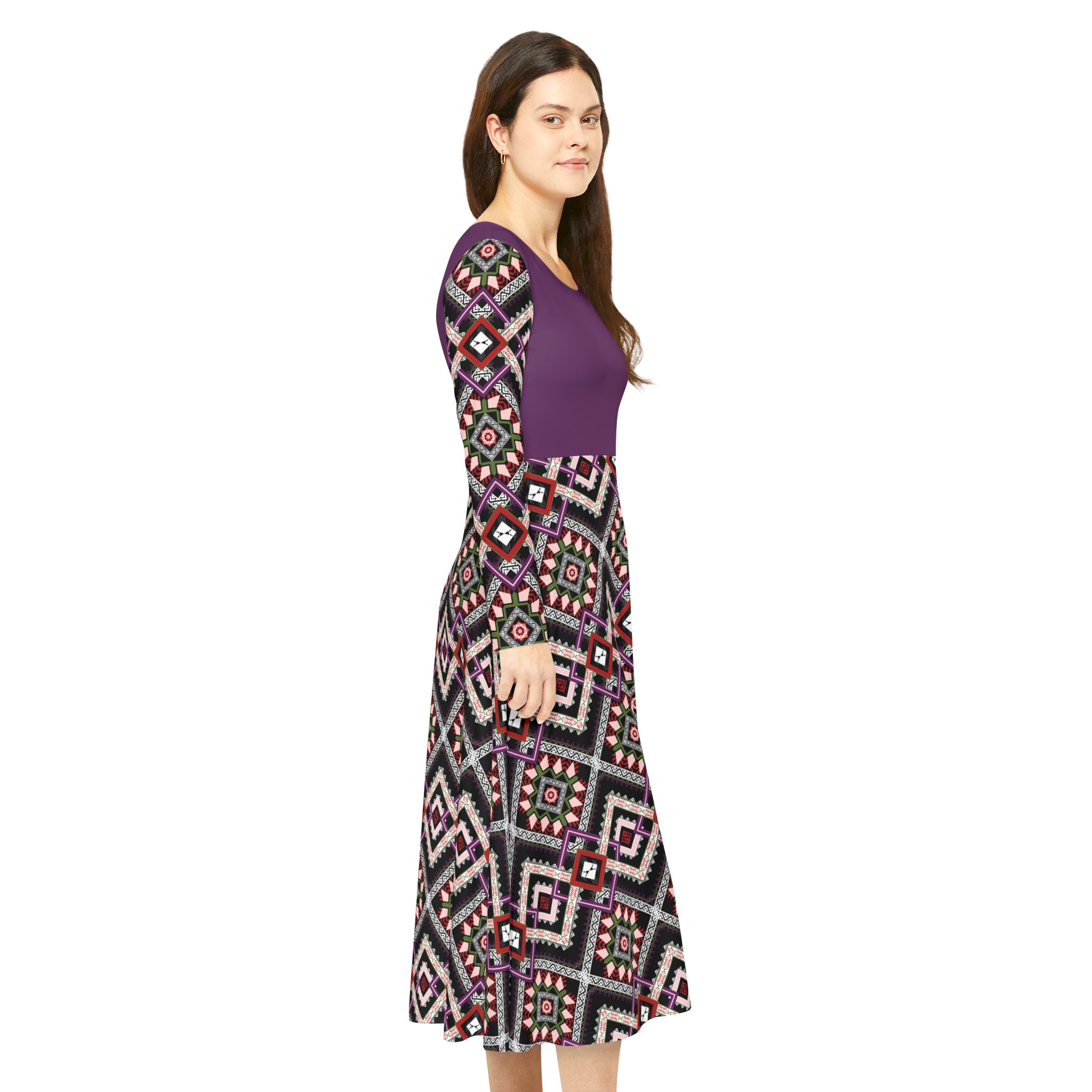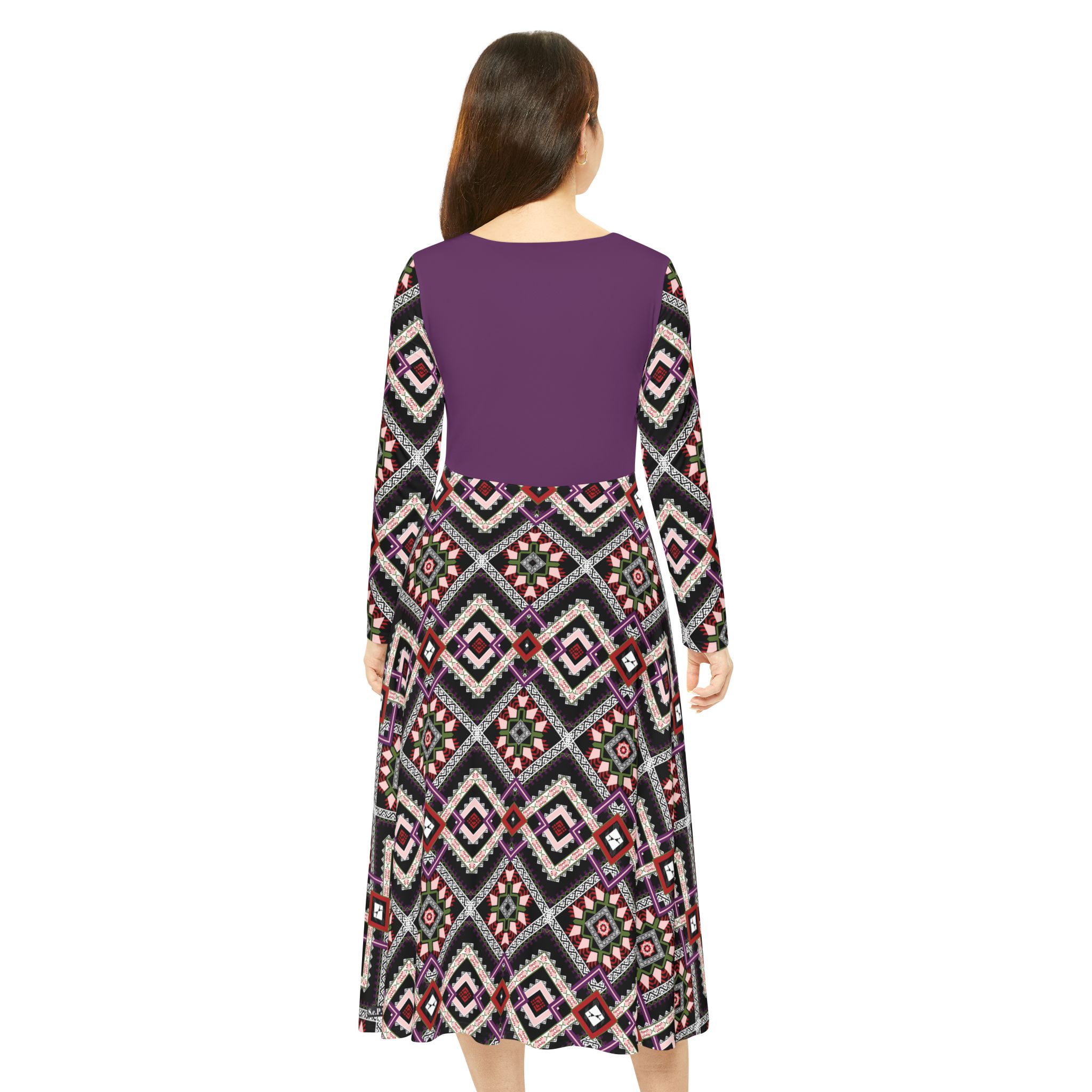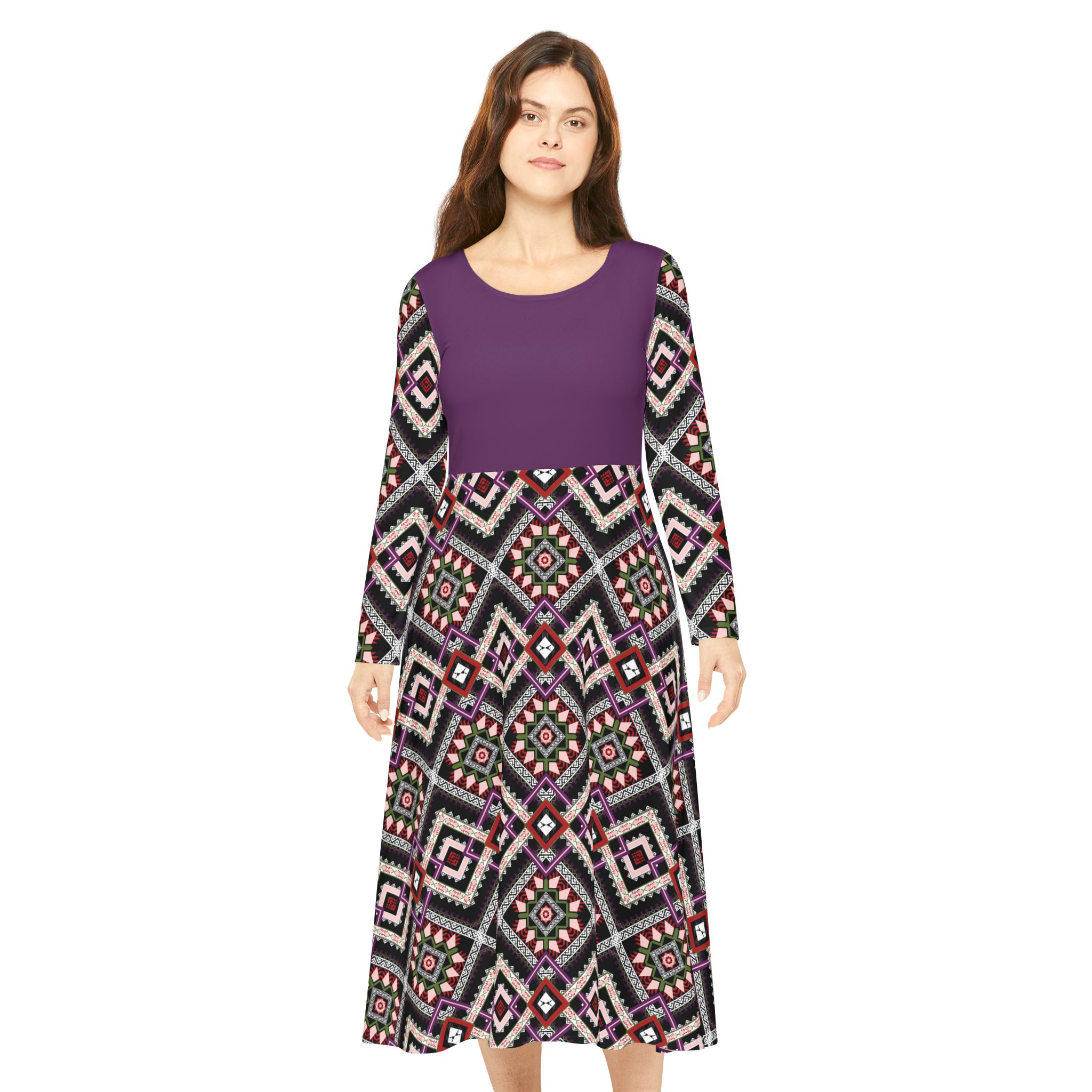 Southwest Diamond Aztec Print Women’s Long Sleeve Dress (S.e.P.T.™)
