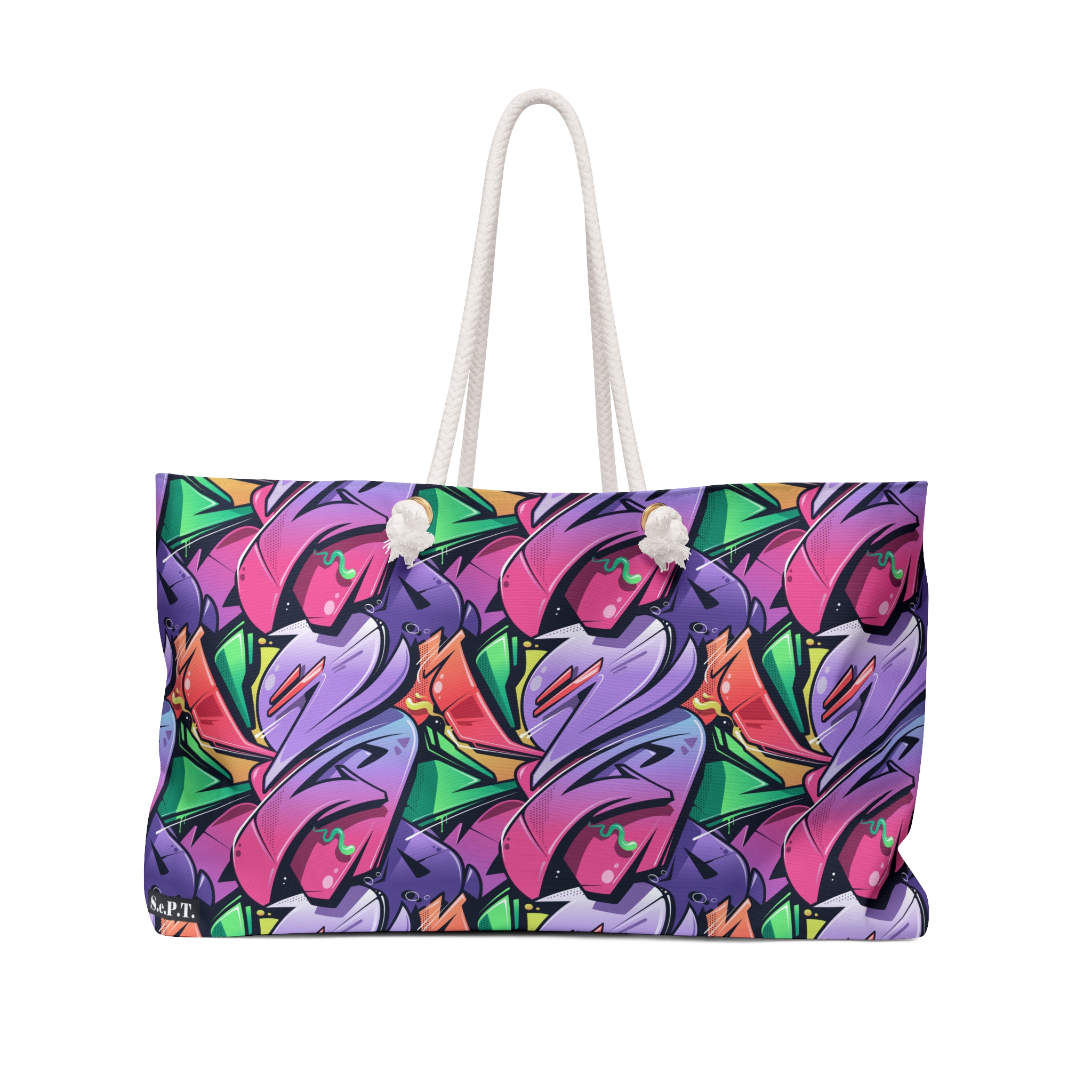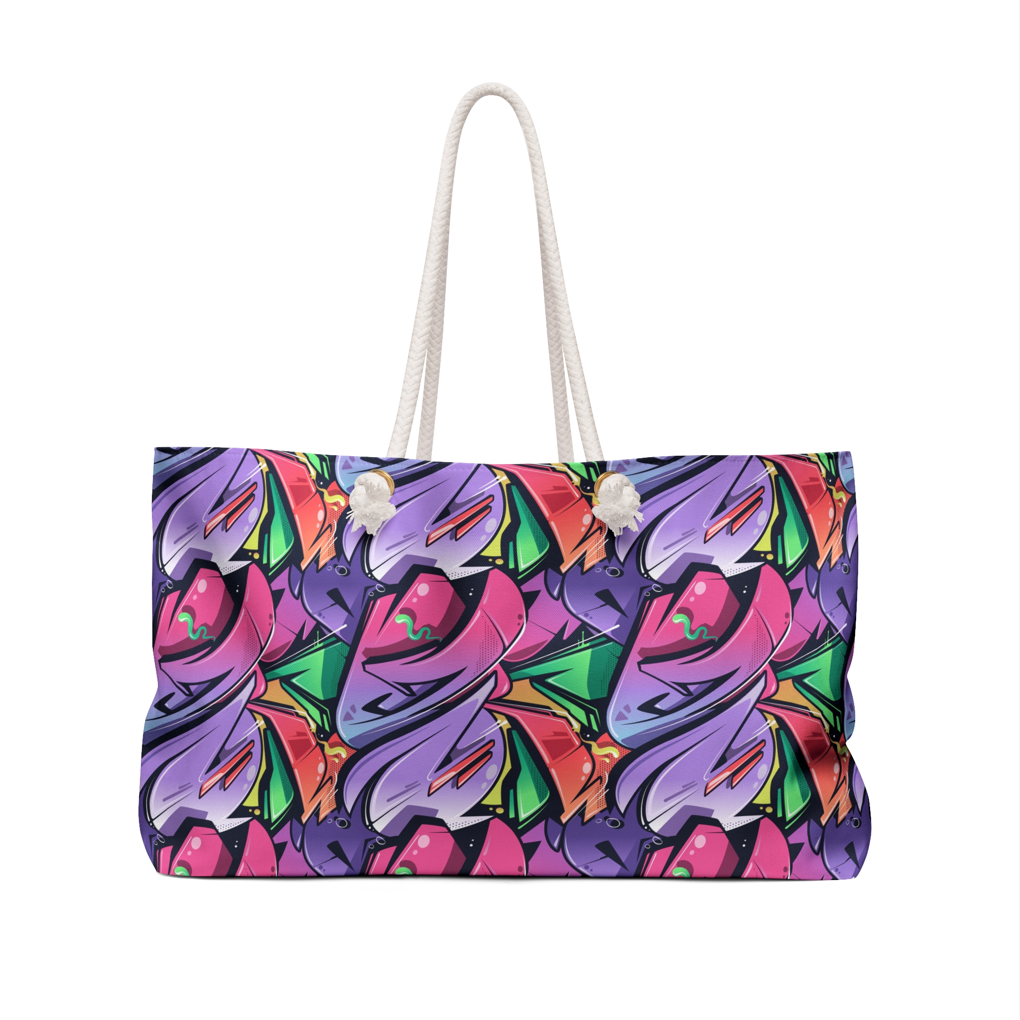 Our oversized Weekender Tote is perfect for your weekend at the beach or in town. The wide-mouthed, durable bag holds a generous amount of personal items and is easily held by its thick rope handles.