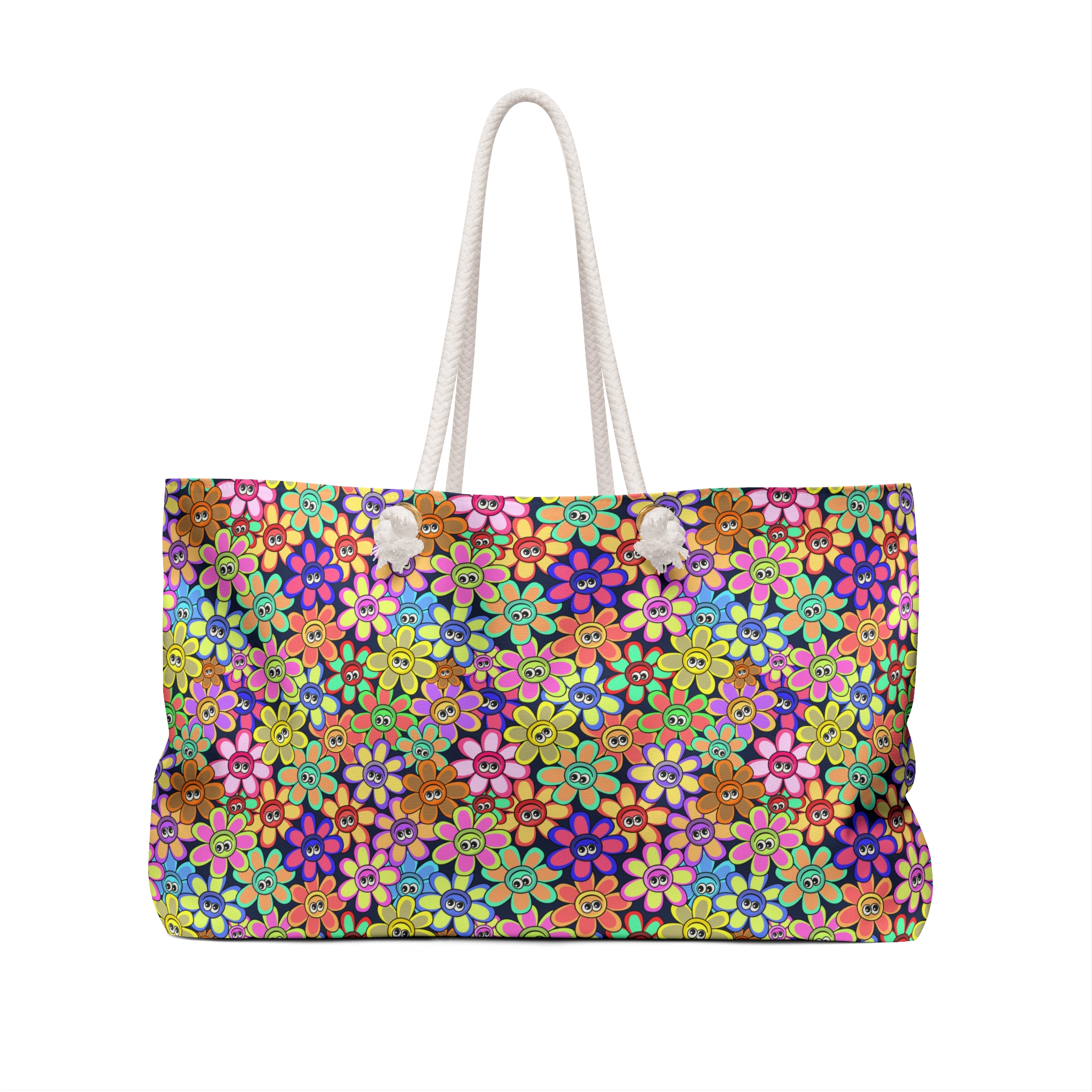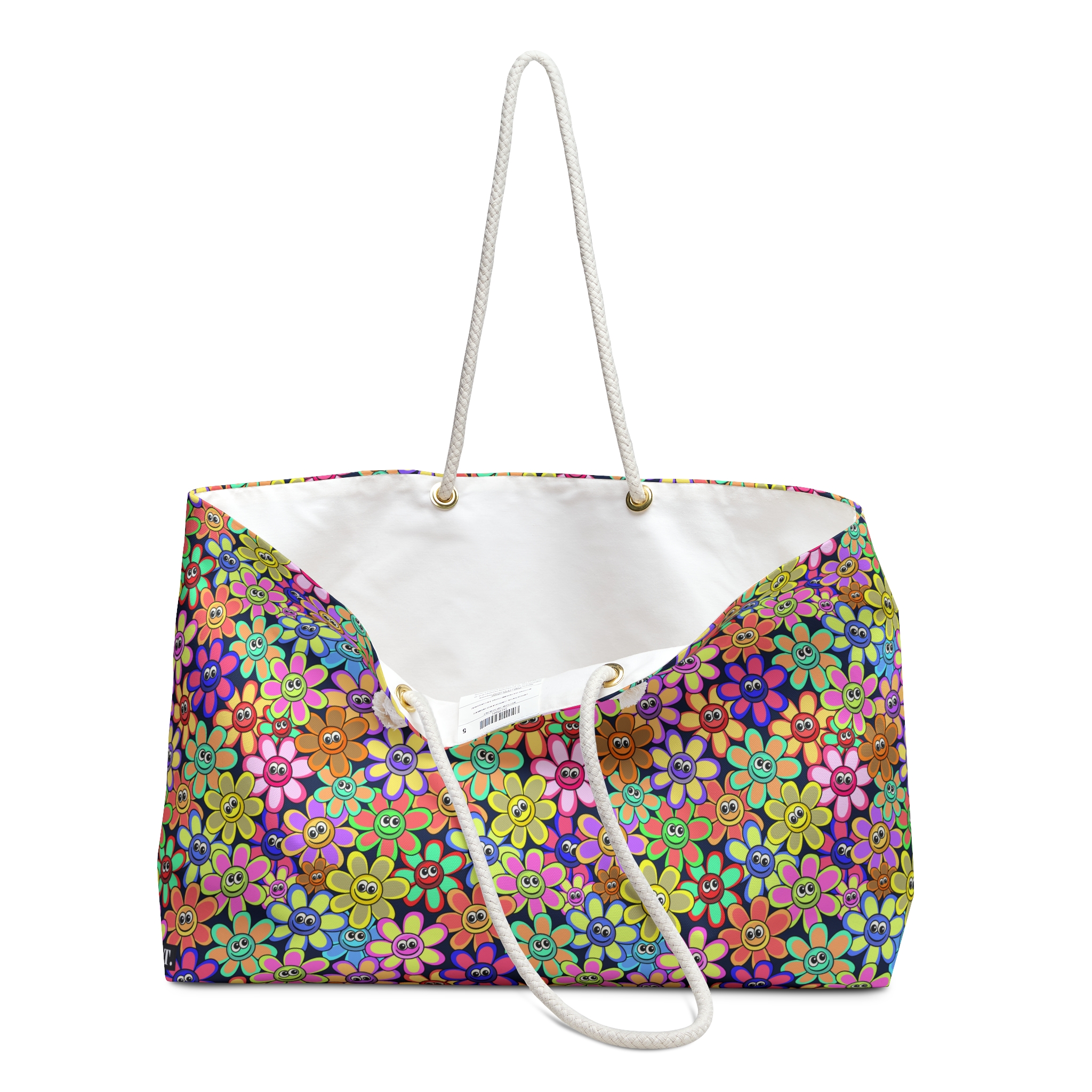 Groovy Multi-Color Smiling Daisy Print Weekender Bag (S.e.P.T.™)
