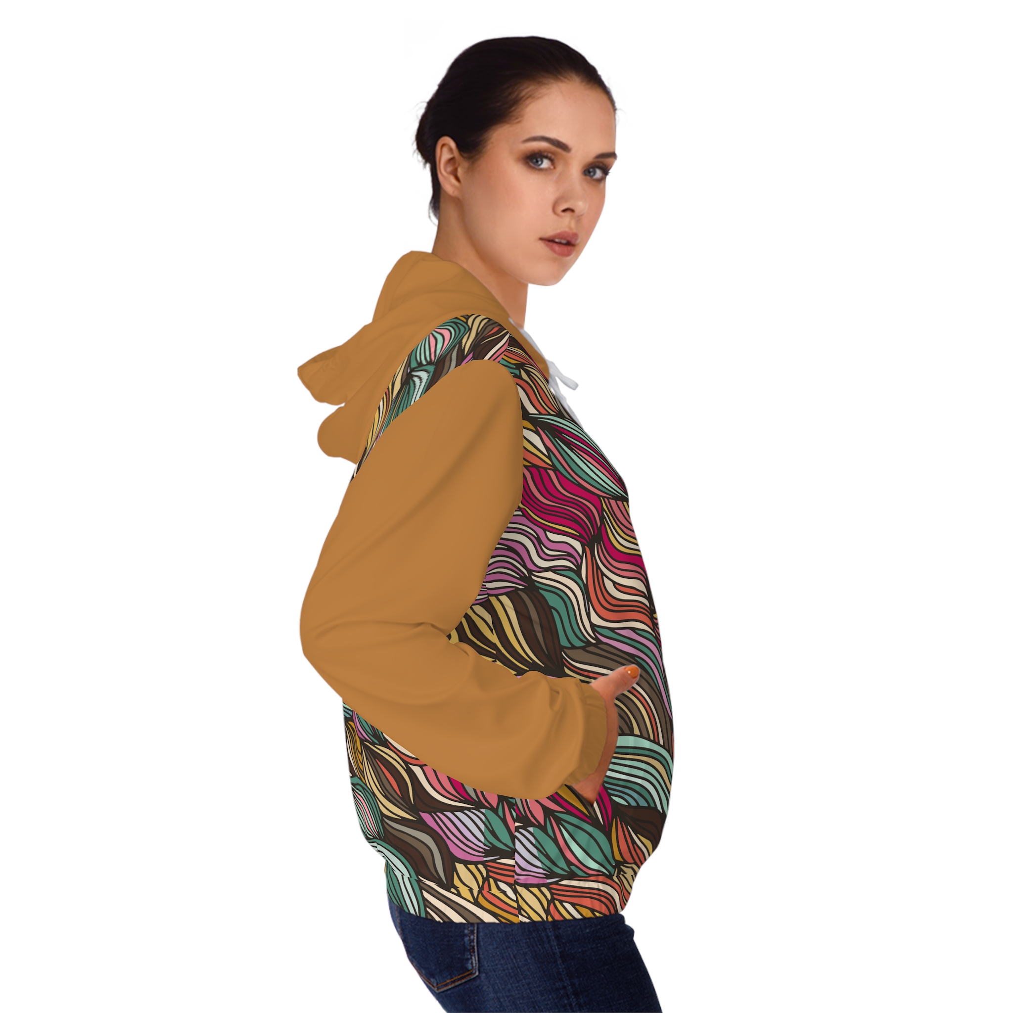 Abstract Wavy Lines Geometric Print Women’s Full-Zip Hoodie (S.e.P.T.™)