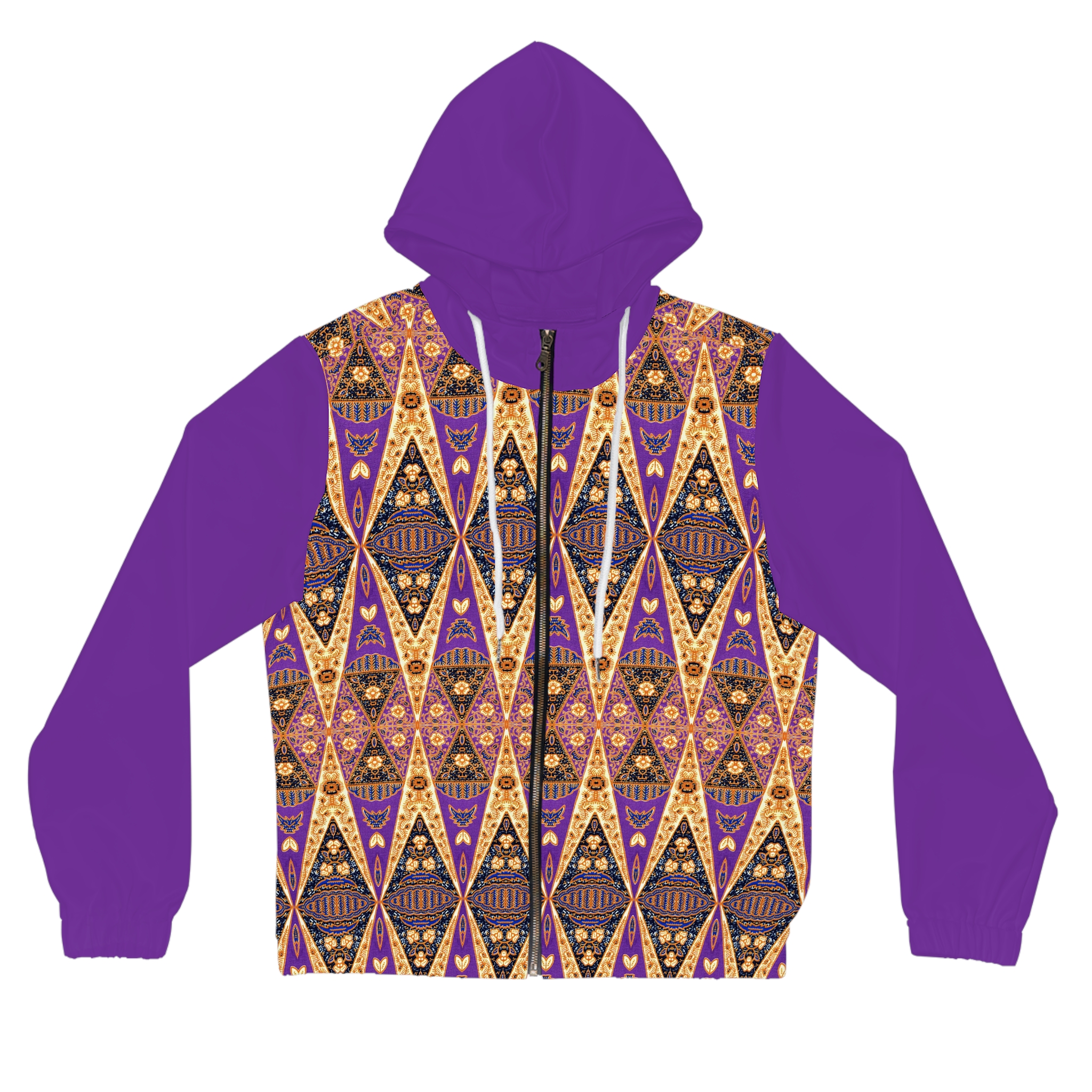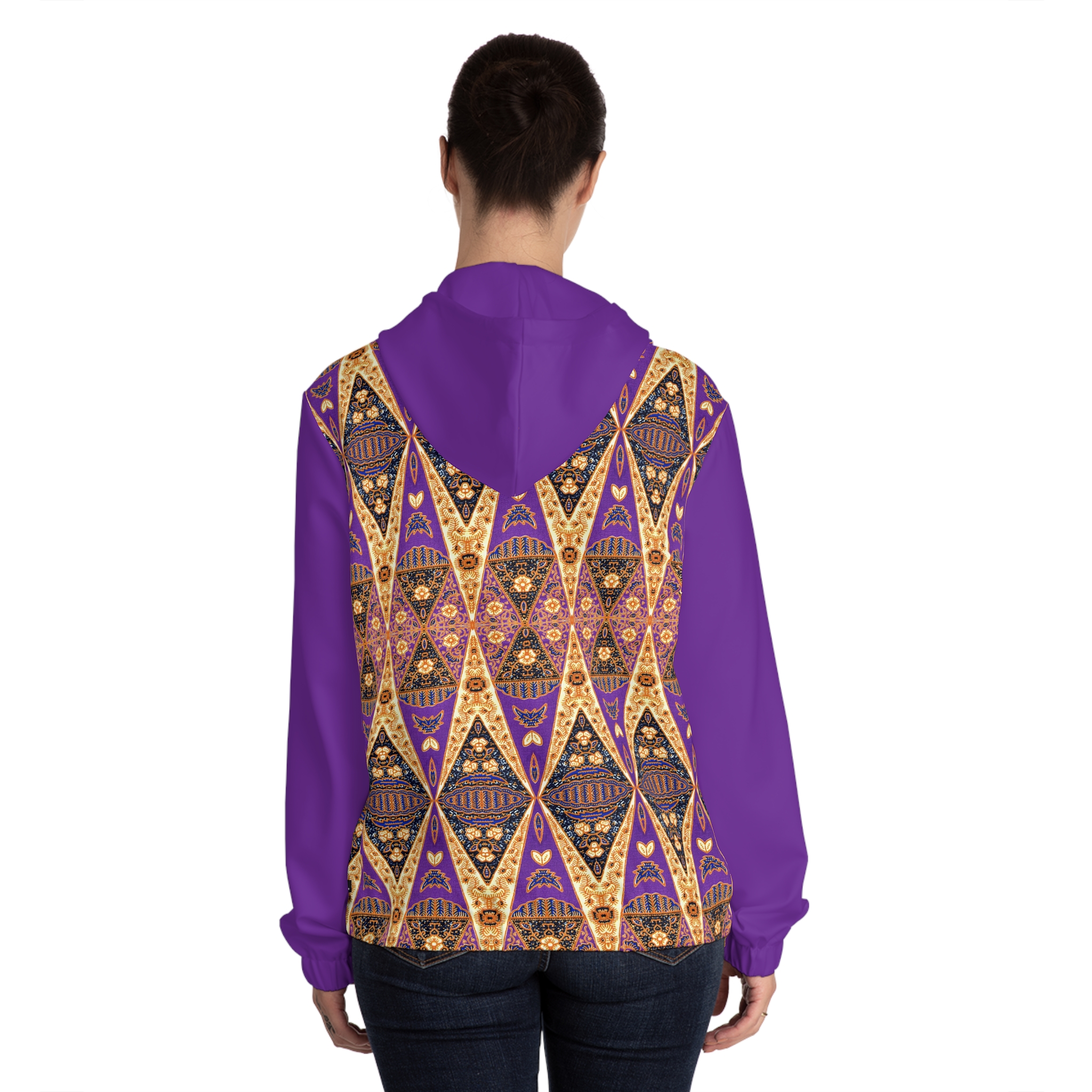 Bohemian Regal Purple and Tan Geometric Pattern Women’s Full-Zip Hoodie (S.e.P.T.™)