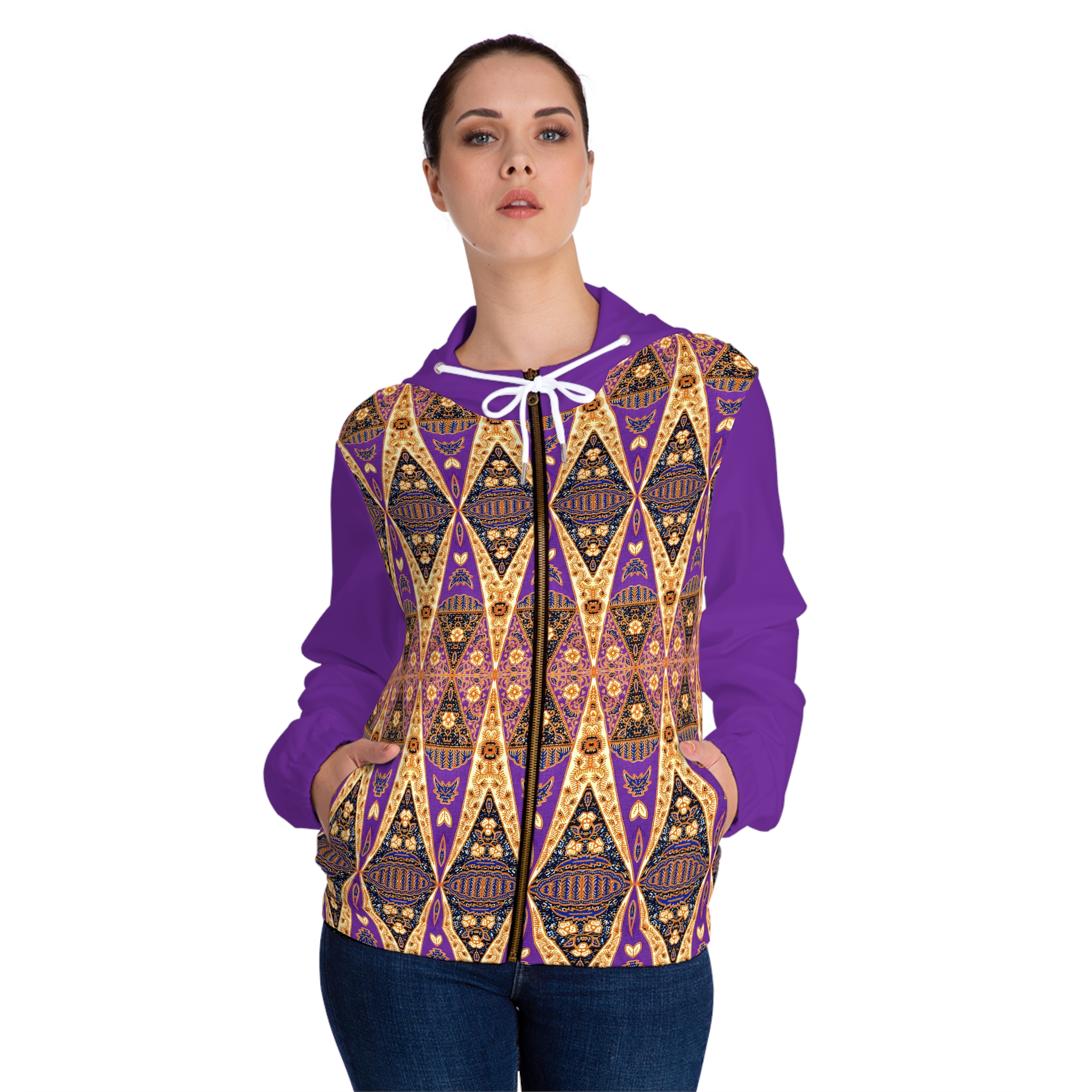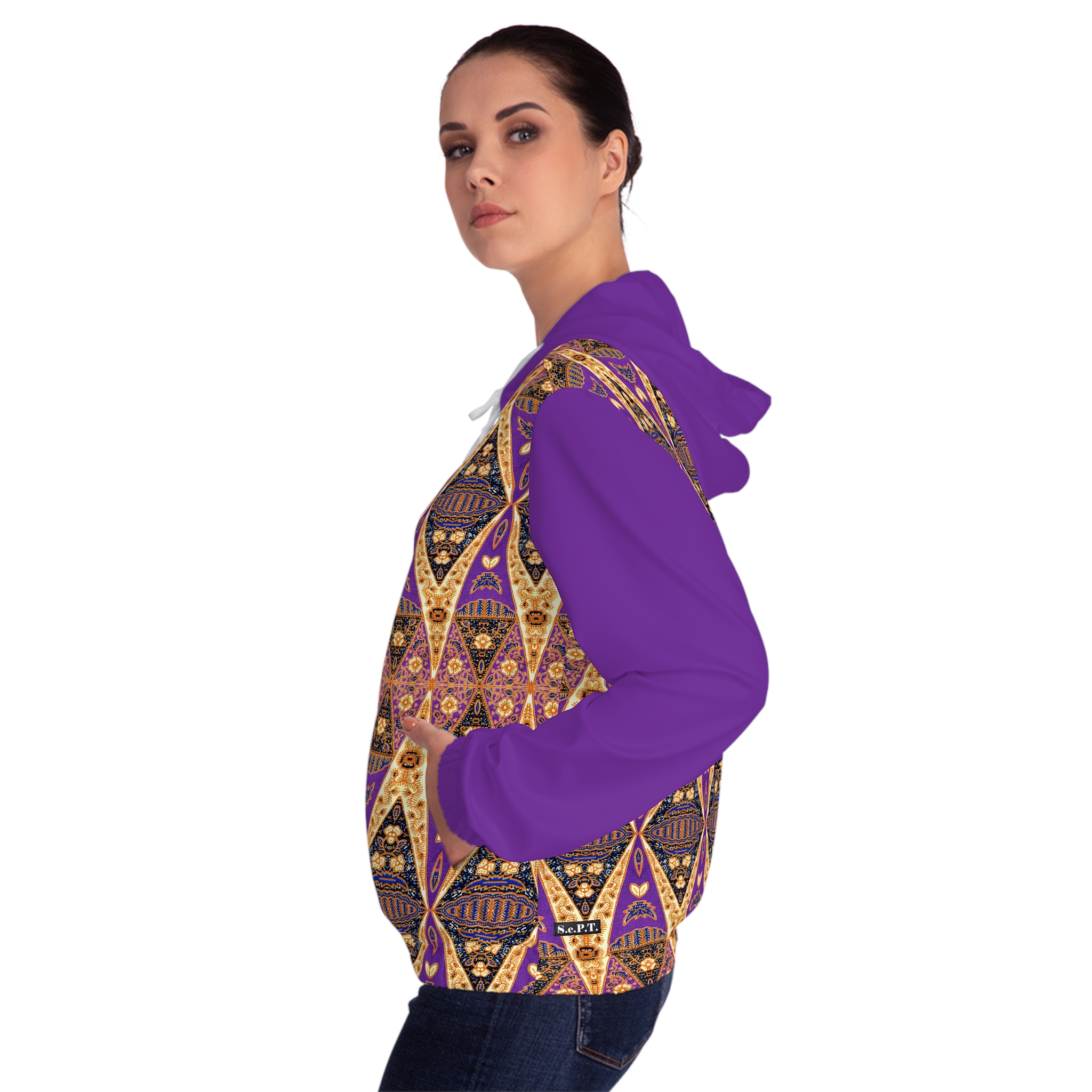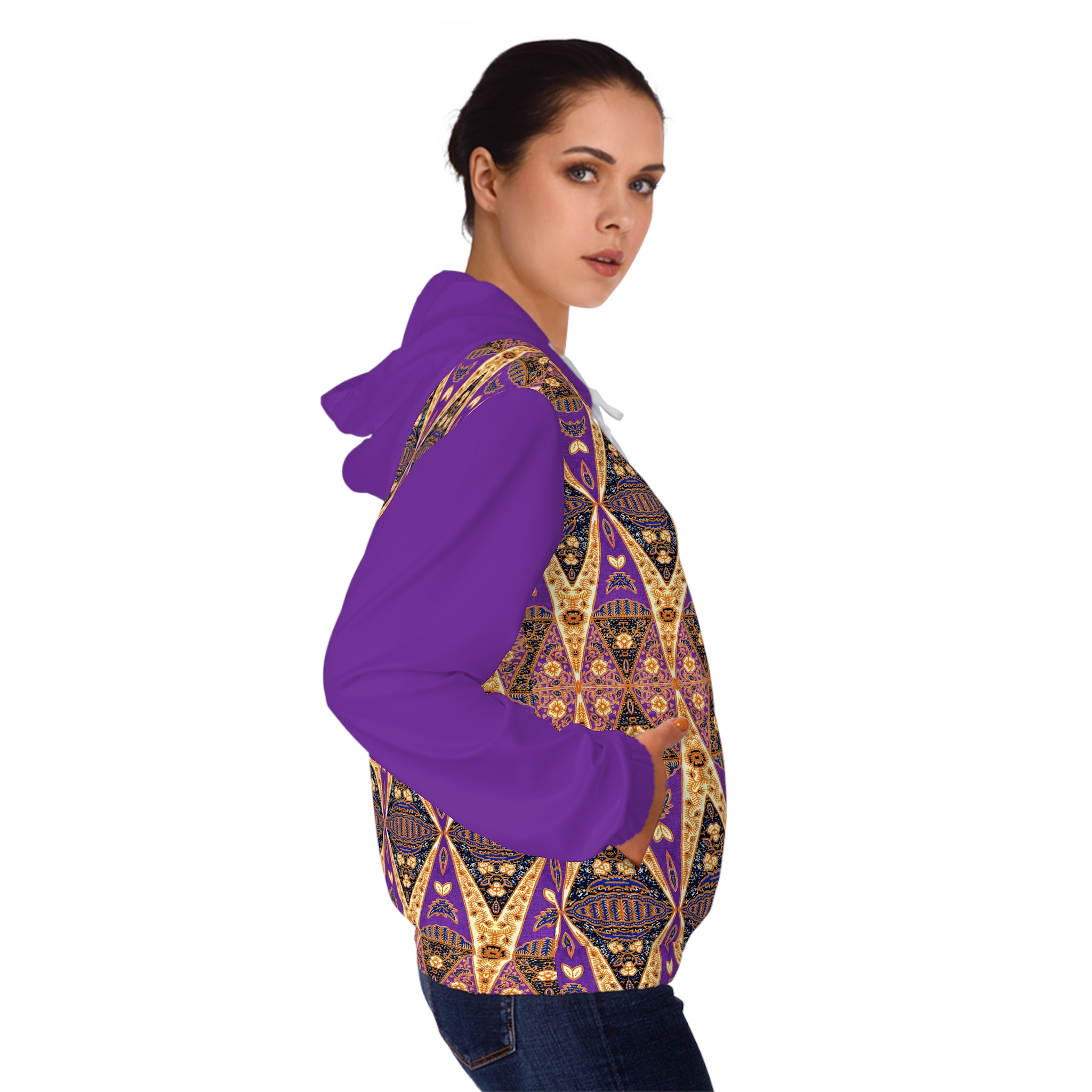 Bohemian Regal Purple & Tan Geometric Pattern Women’s Full-Zip Hoodie (S.e.P.T.™)