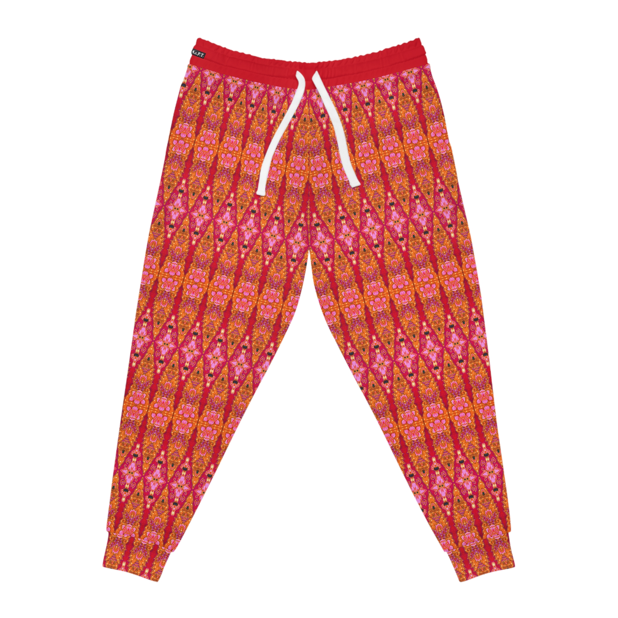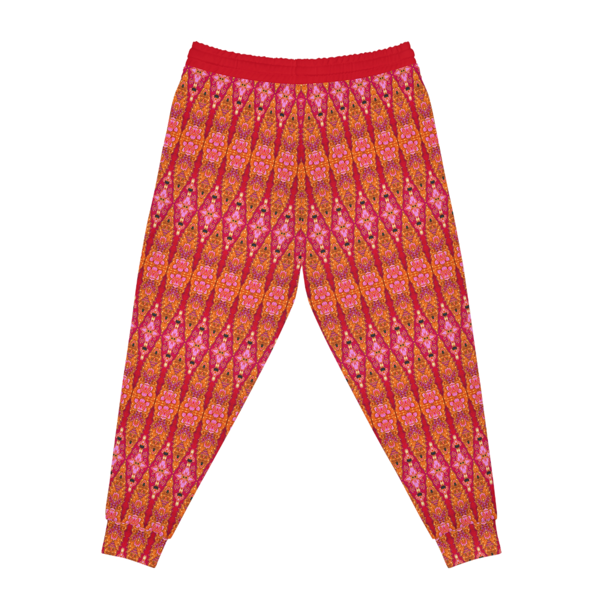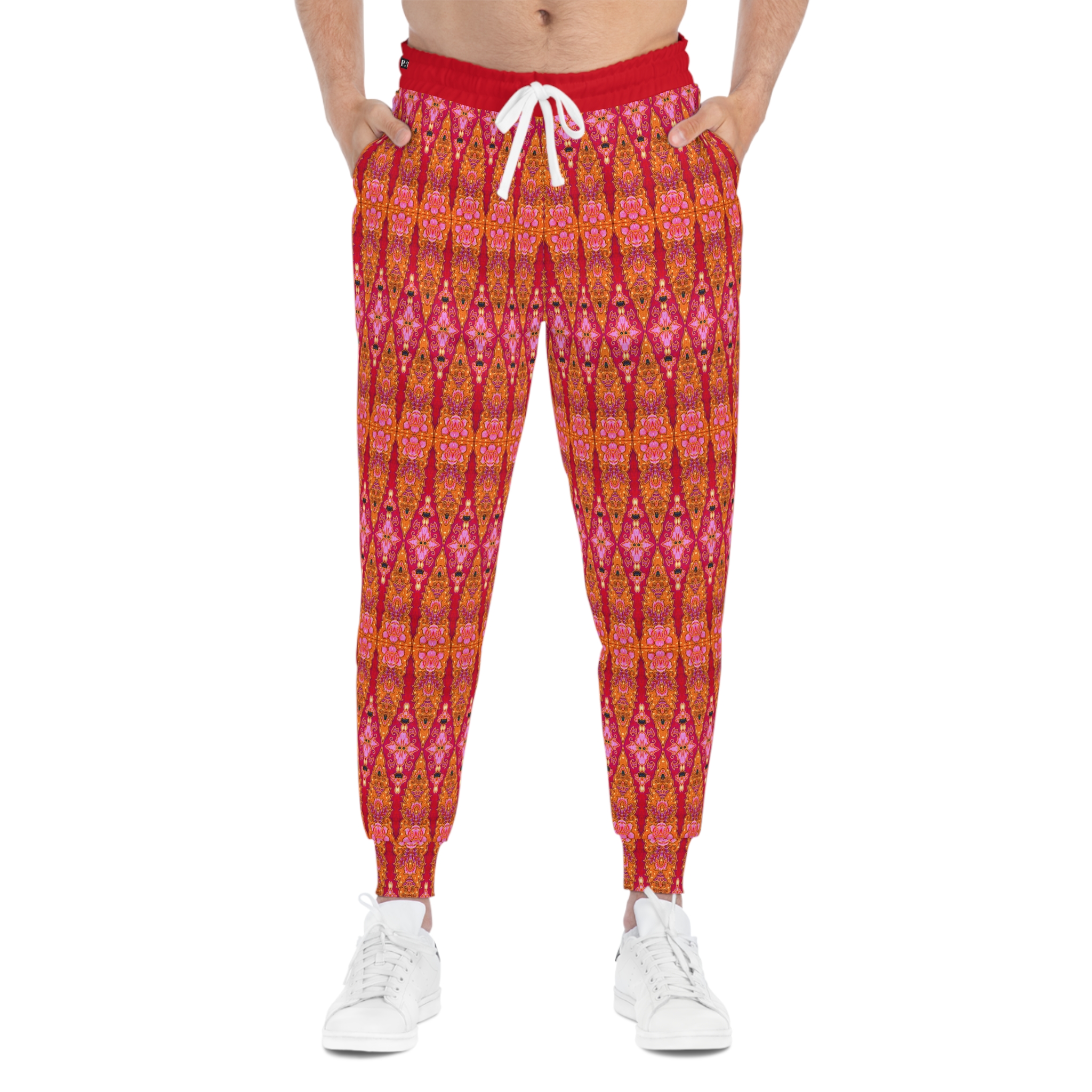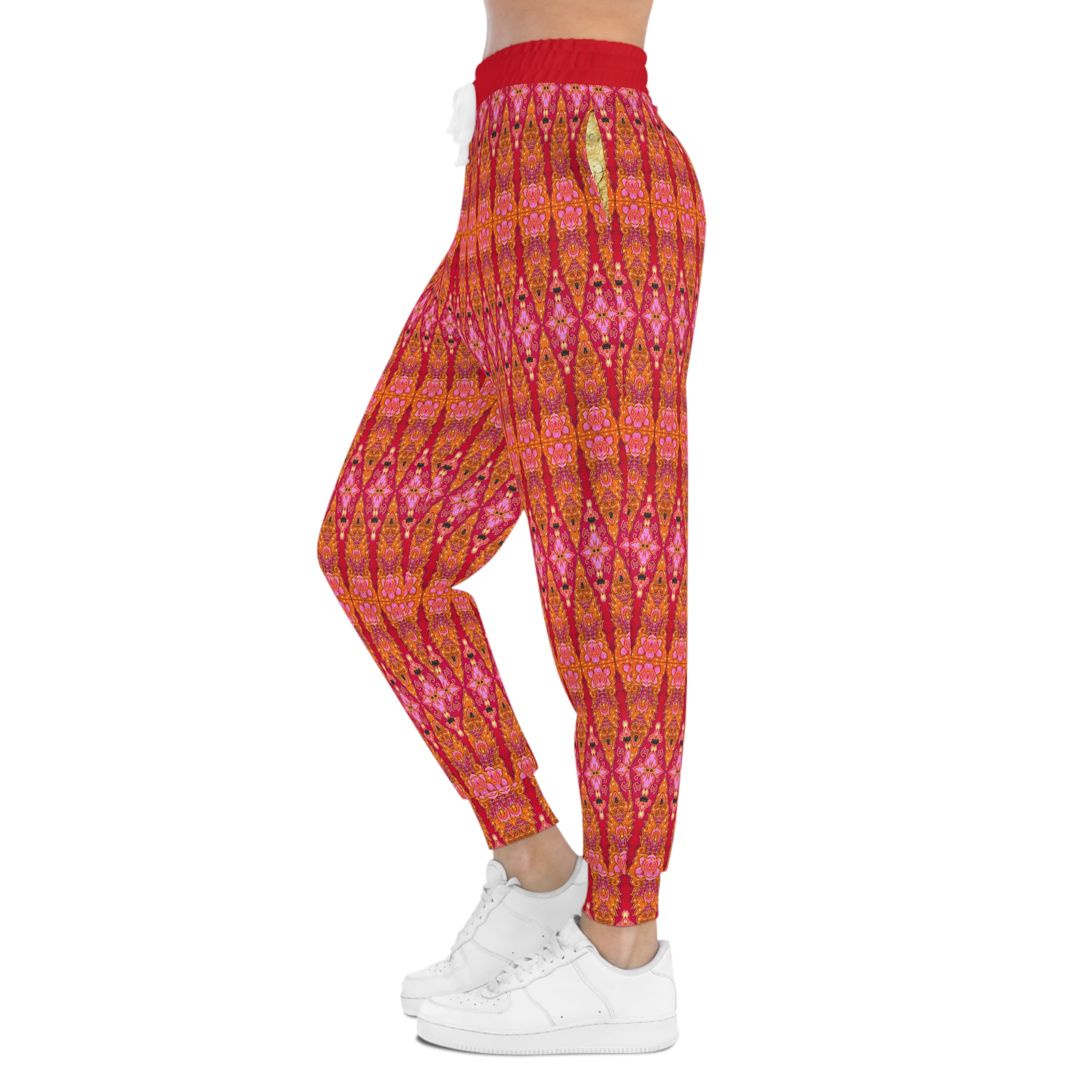 Bohemian Bright Fuchsia & Orange Geometric Gold Pockets Athletic Joggers (S.e.P.T.™)