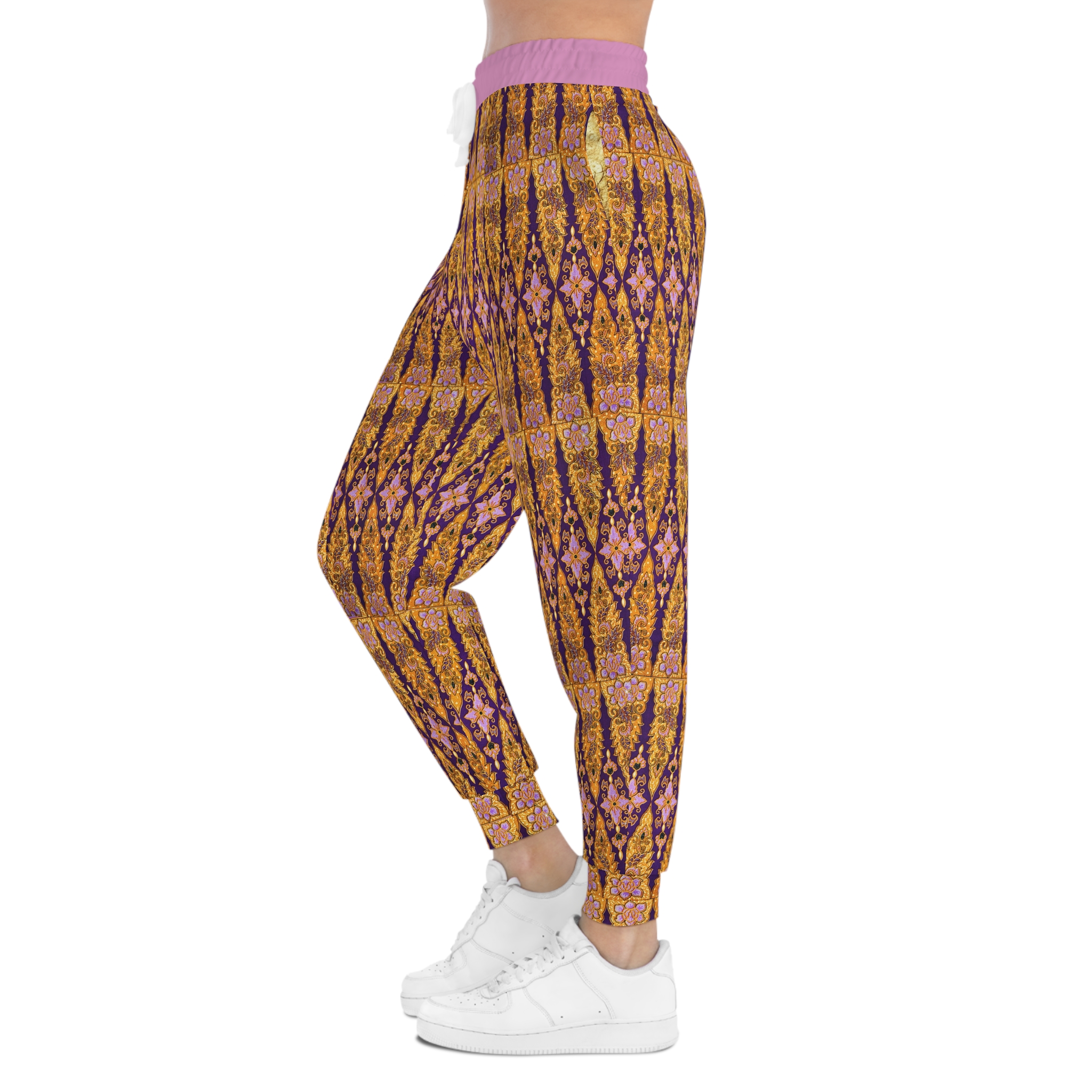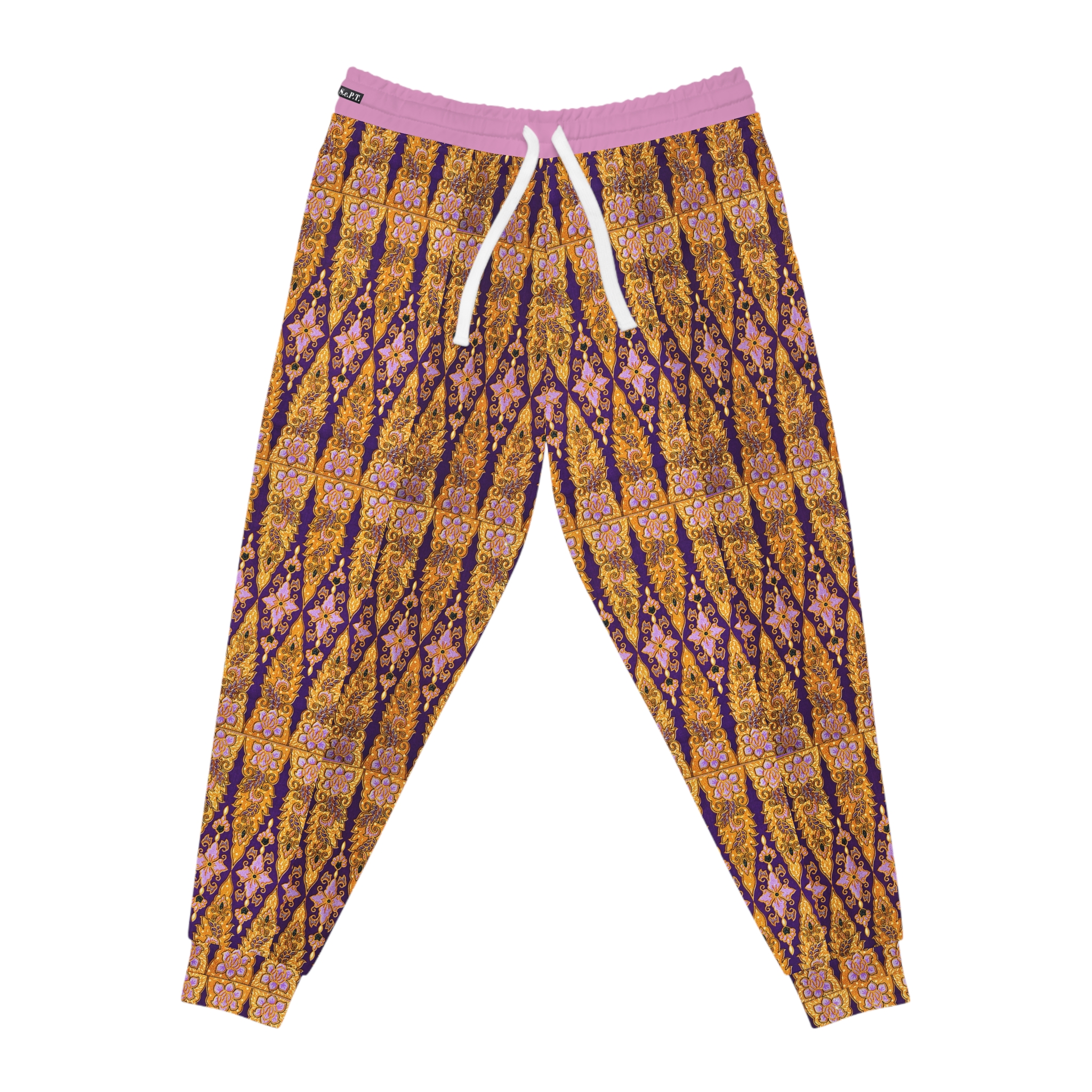 Bohemian Lavender & Tan Geometric Pattern Gold Pockets Athletic Joggers (S.e.P.T.™)