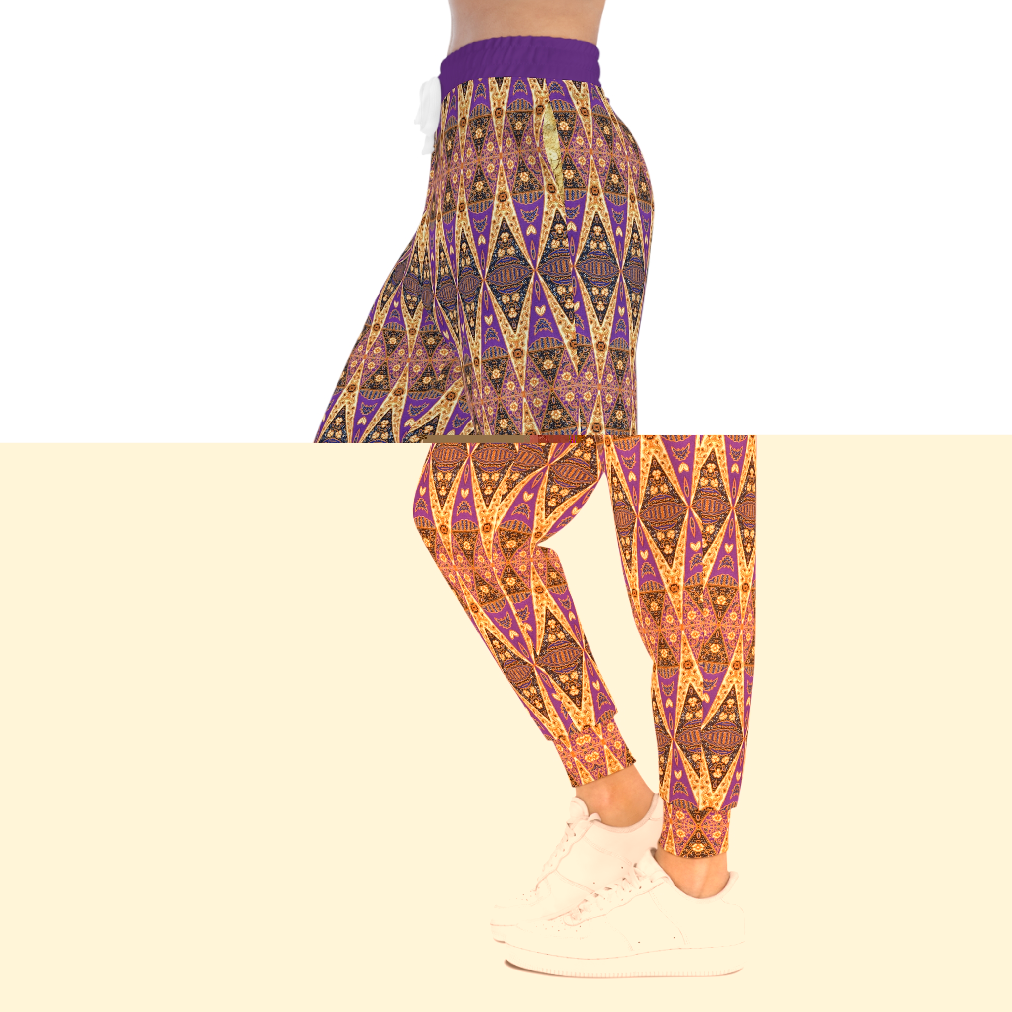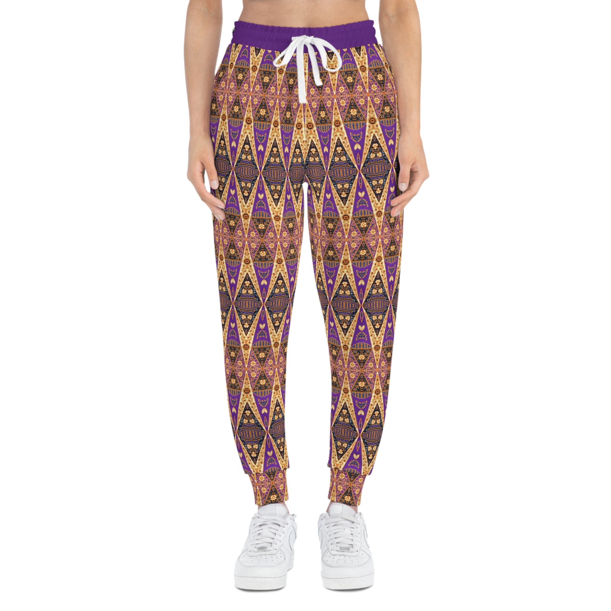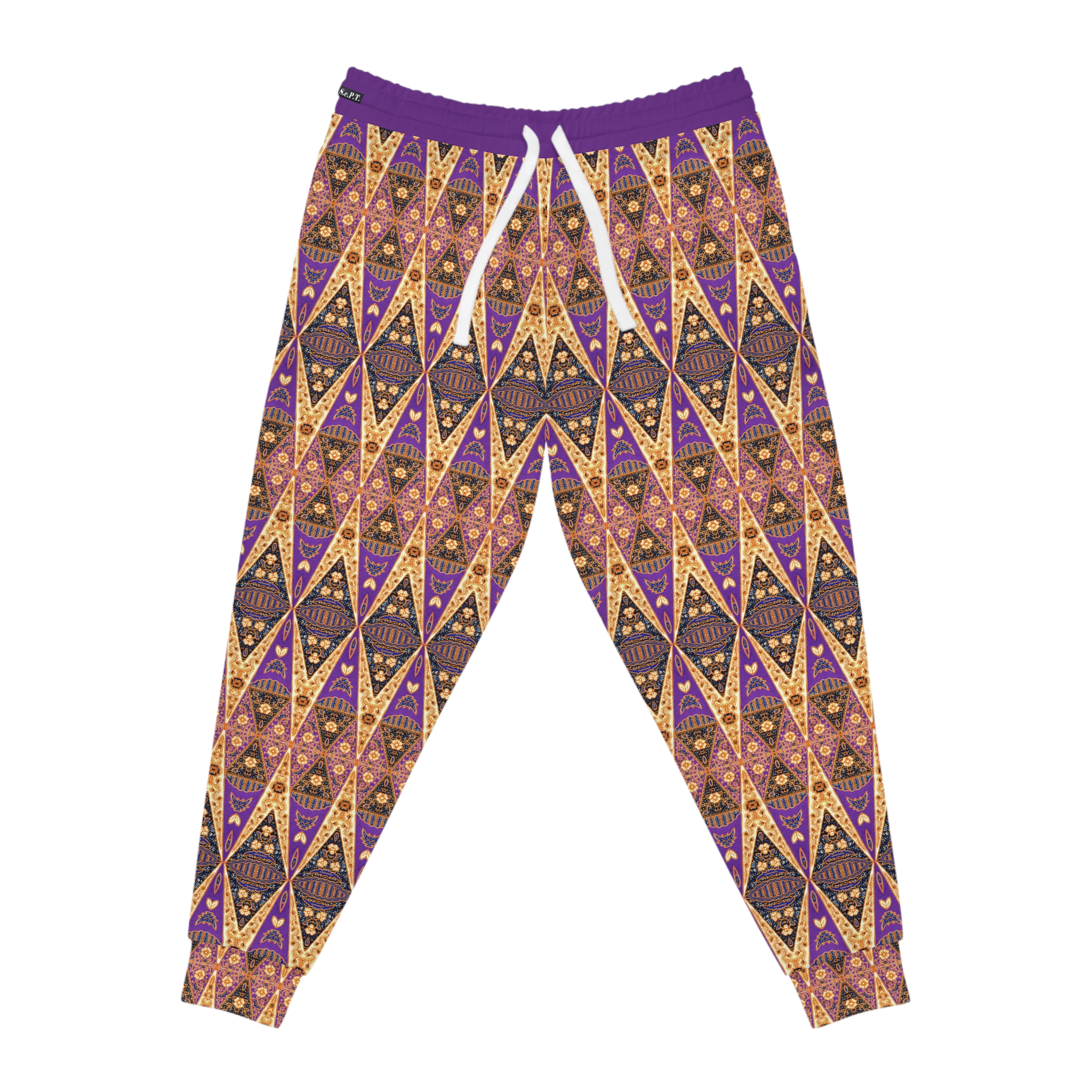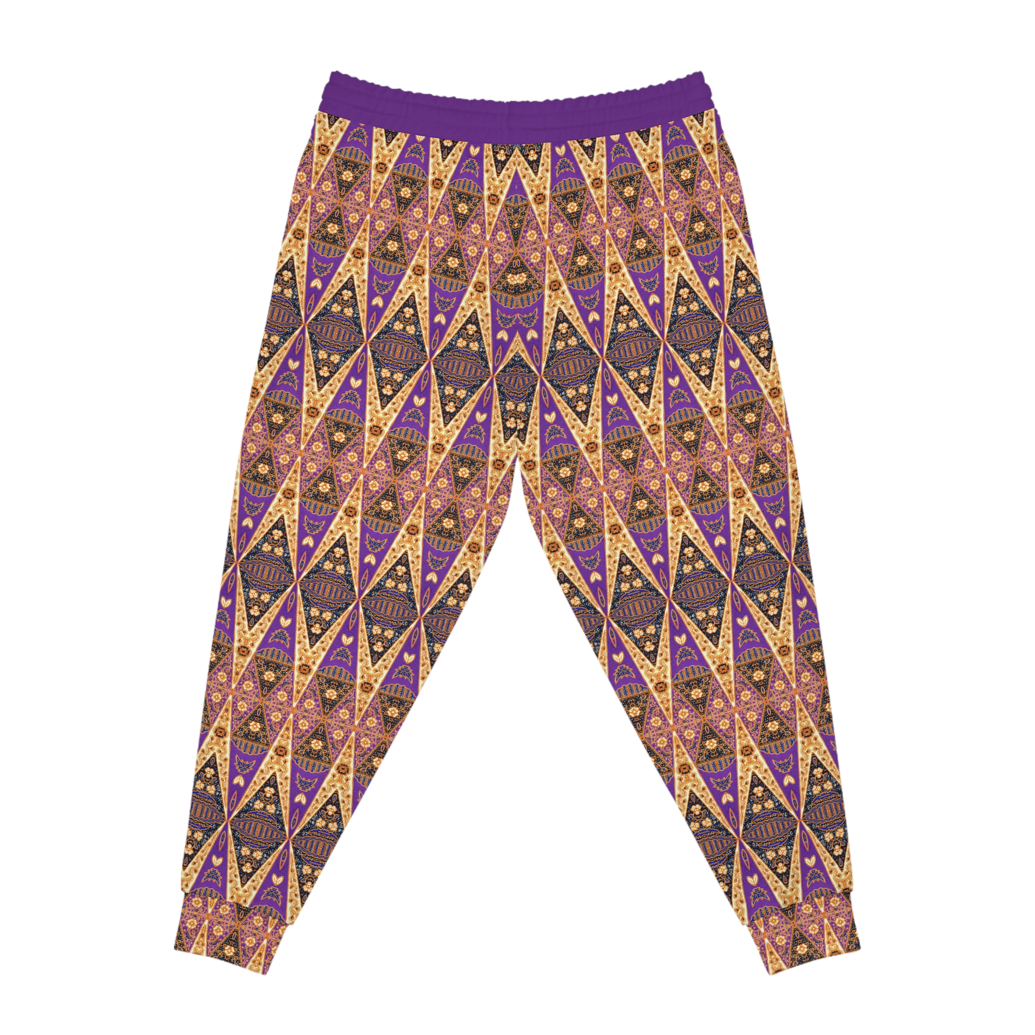 Bohemian Regal Purple and Tan Geometric Pattern Gold Pockets Athletic Joggers (S.e.P.T.™)