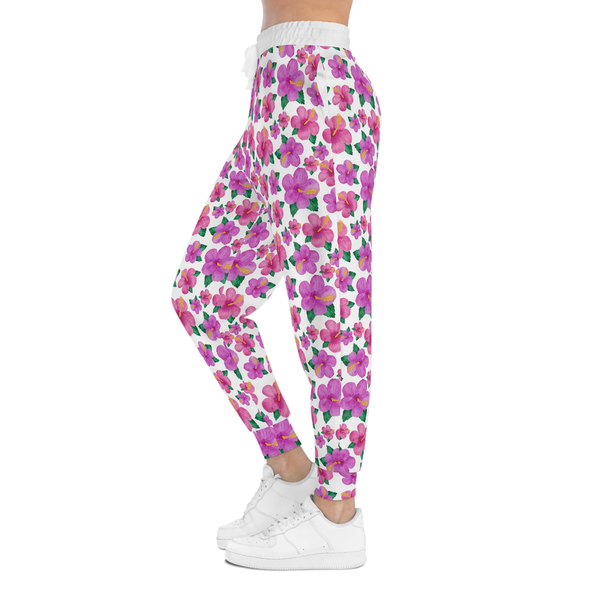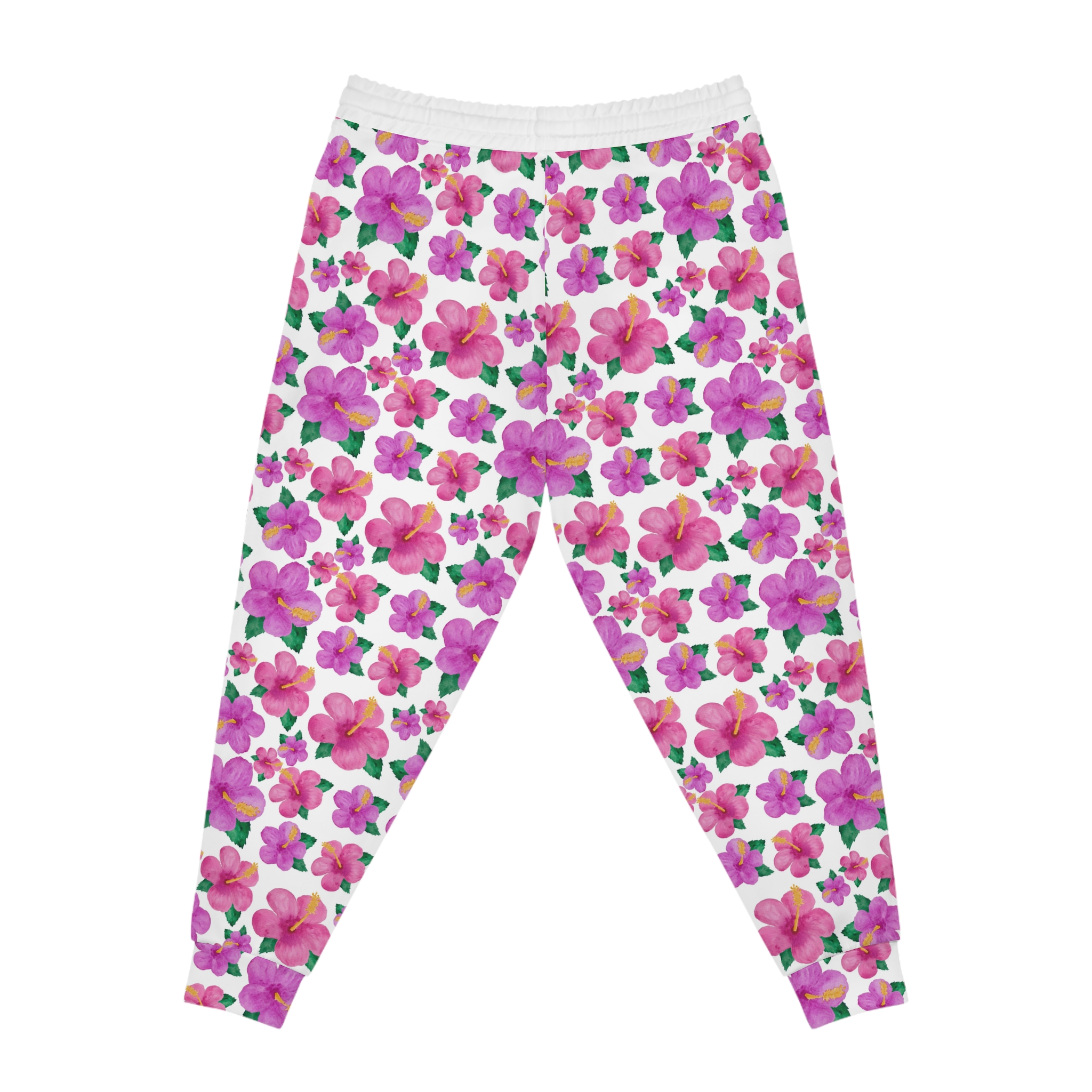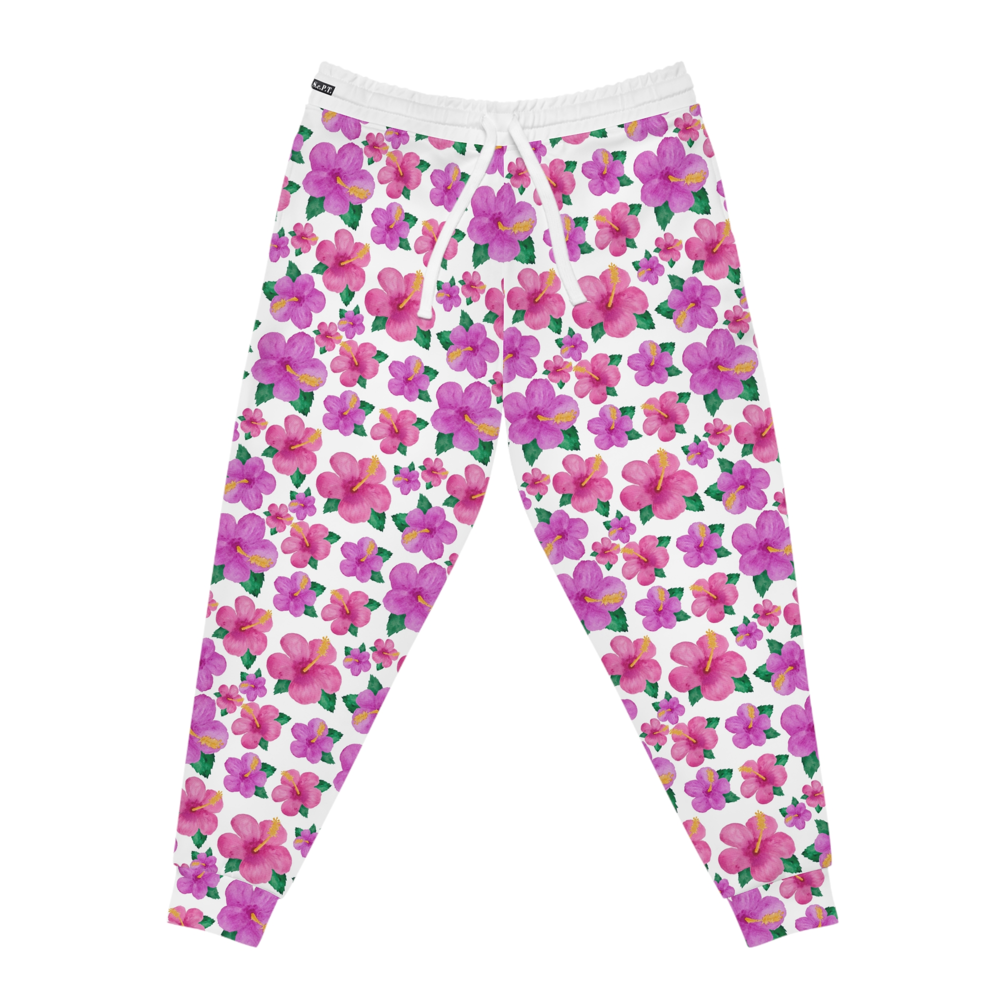 Bright Fuchsia Hibiscus Floral Print Athletic Joggers (S.e.P.T.™)