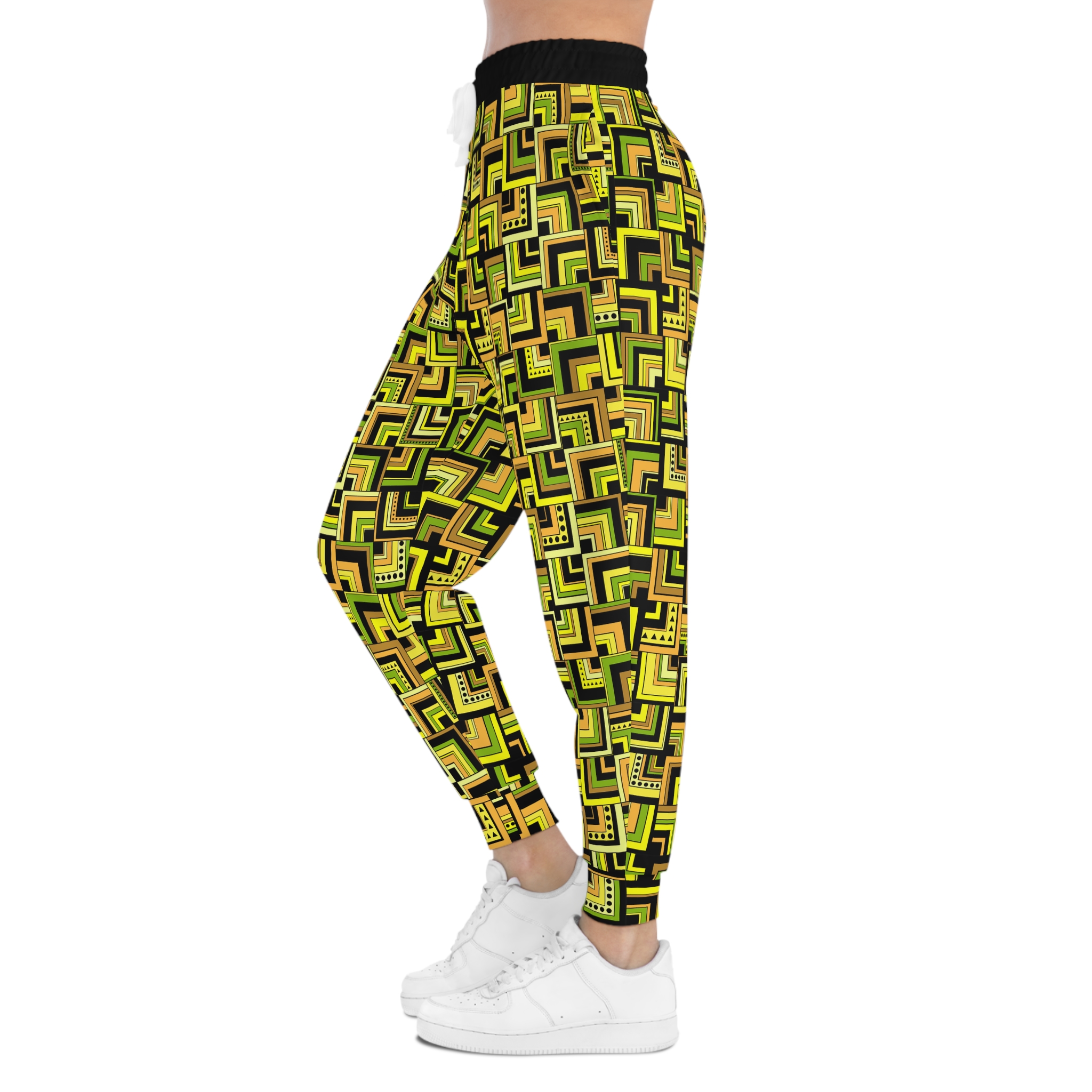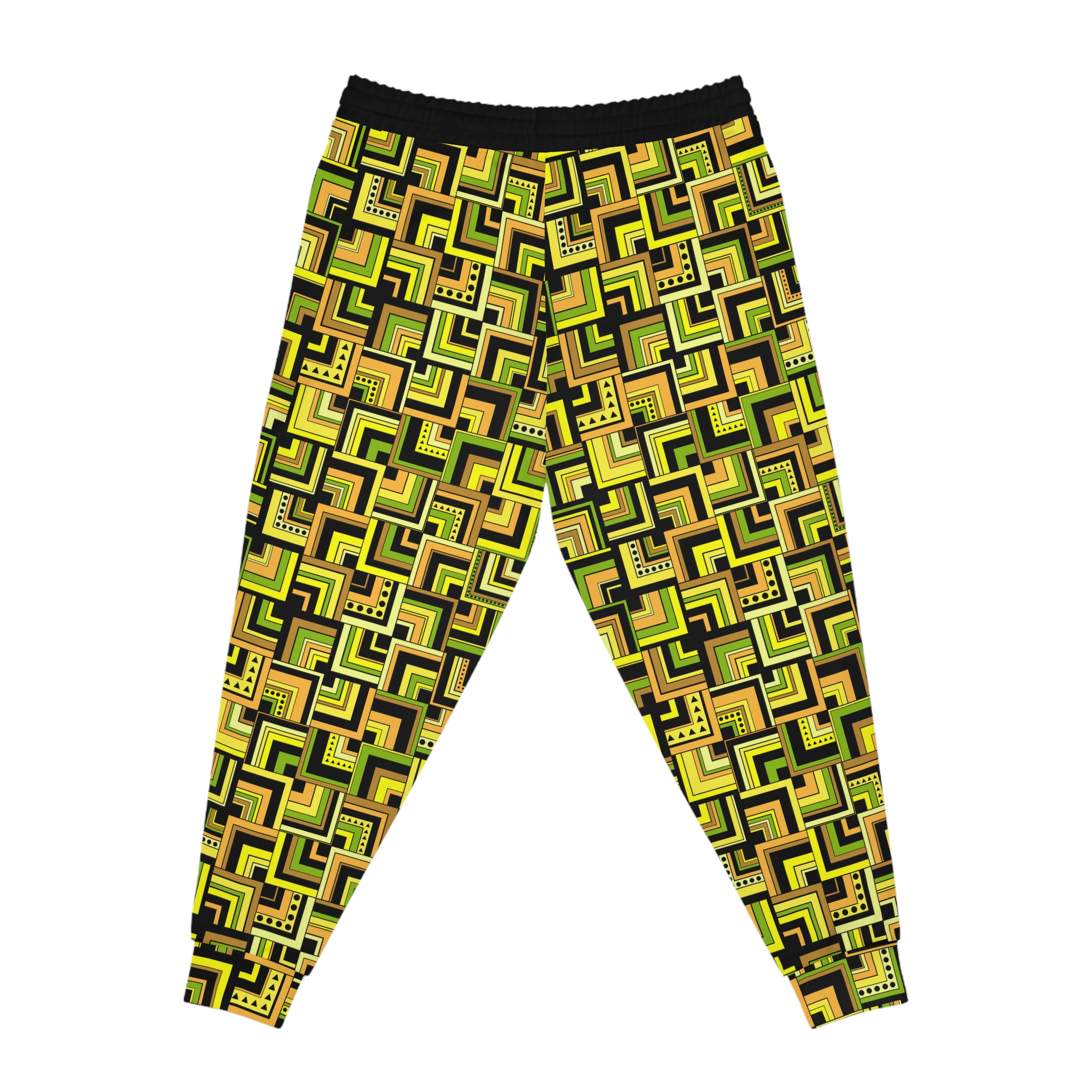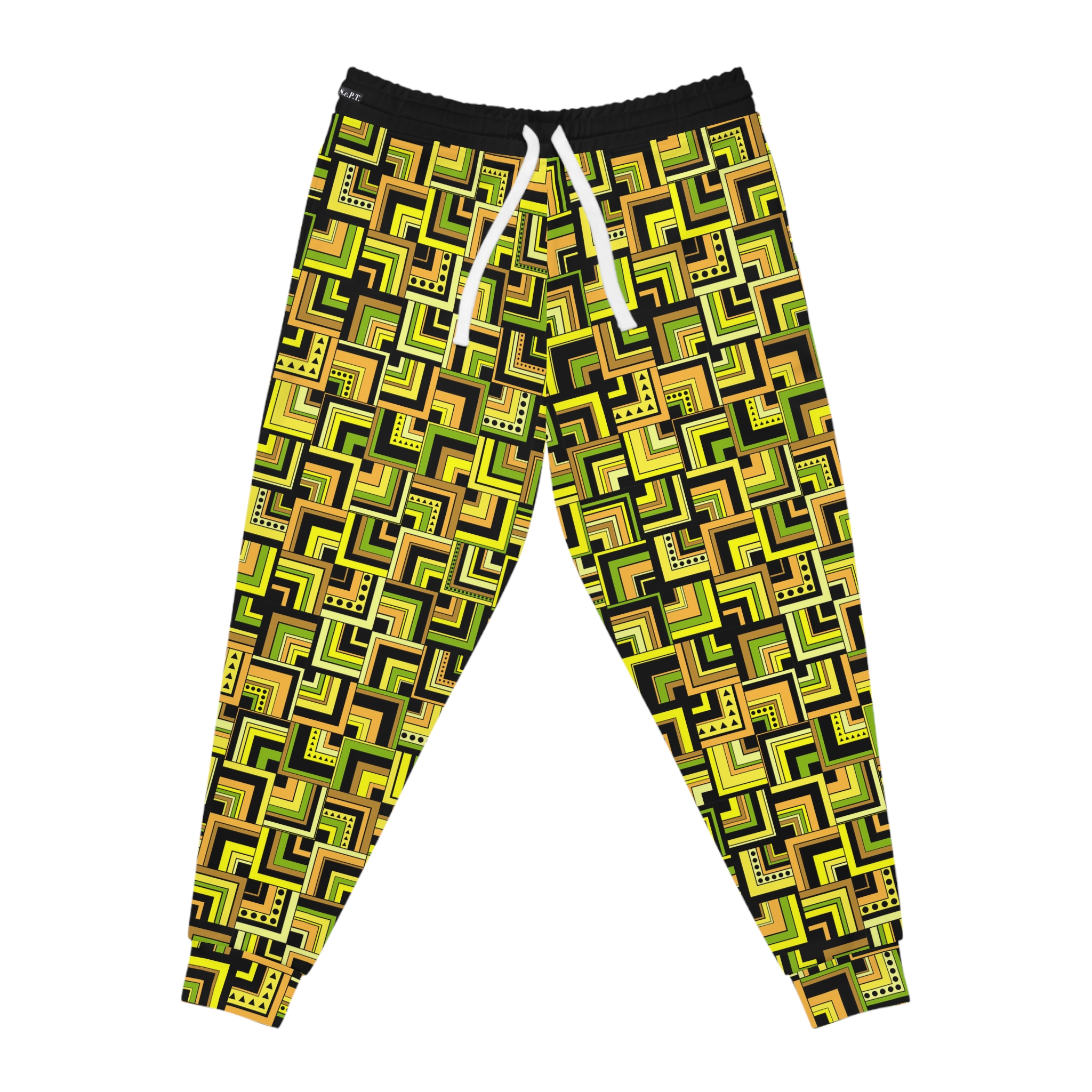 Yellow Retro Corner Block Geometric Print Athletic Joggers (S.e.P.T.™)