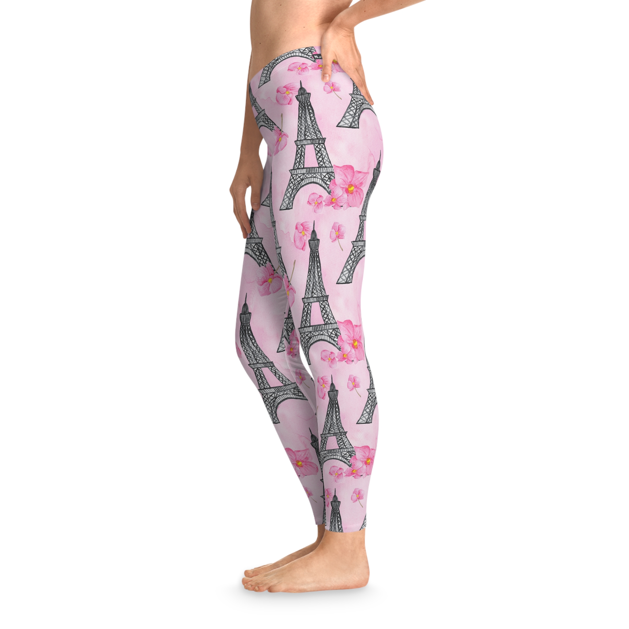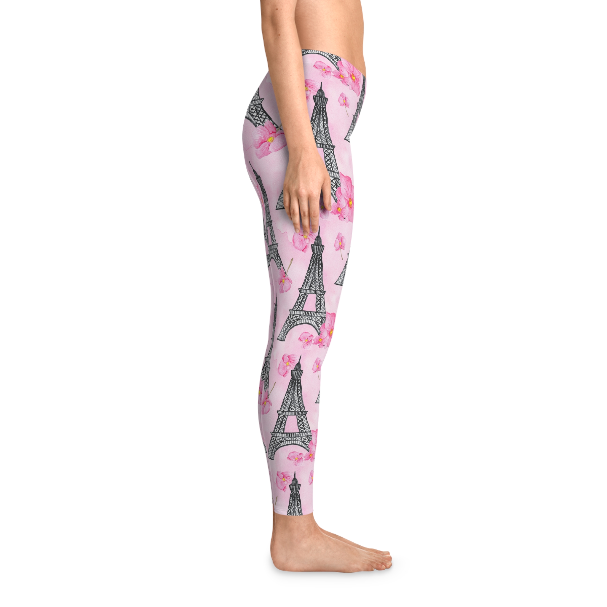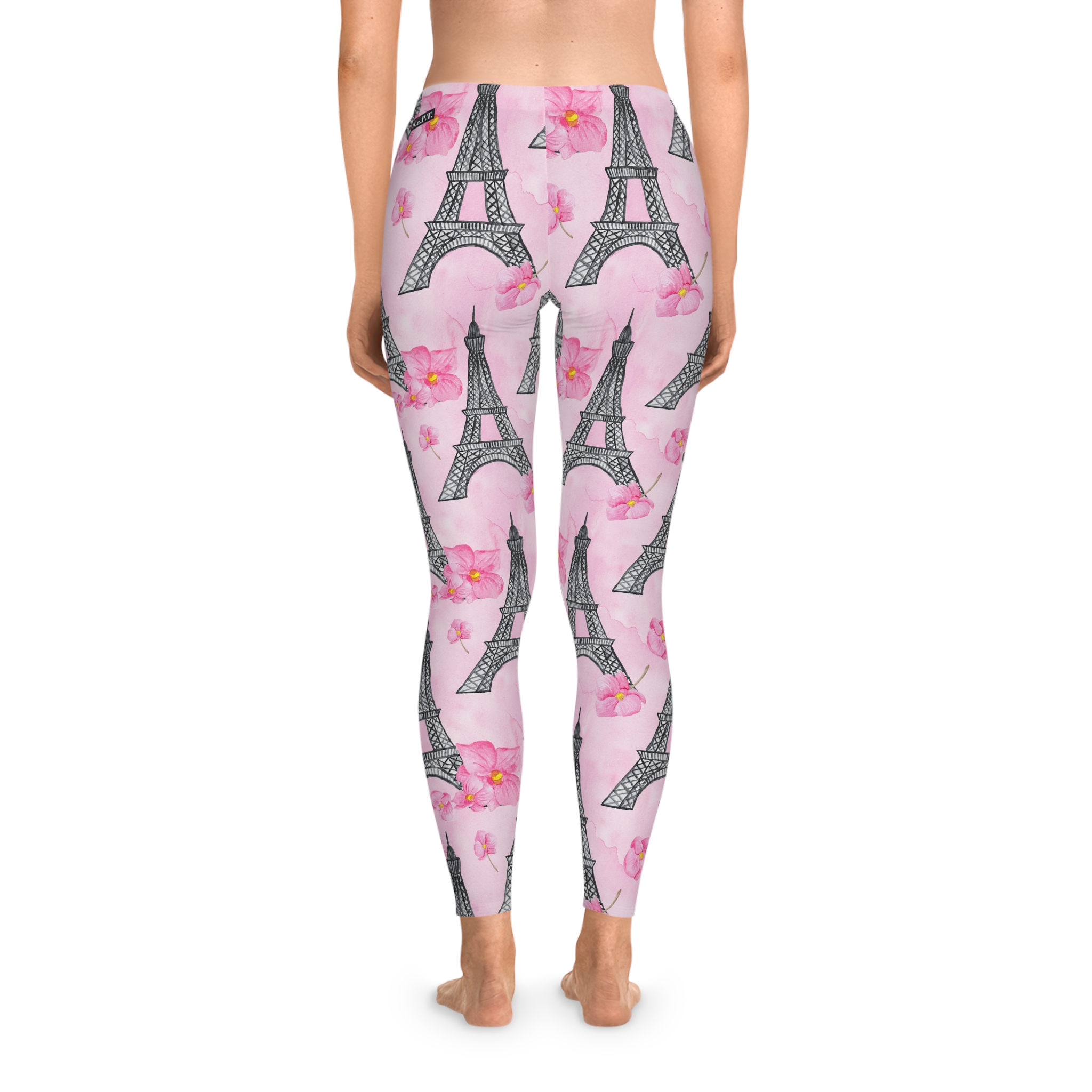 Parisian Eiffel Tower & Pink Floral Stretchy Leggings (S.e.P.T.™)