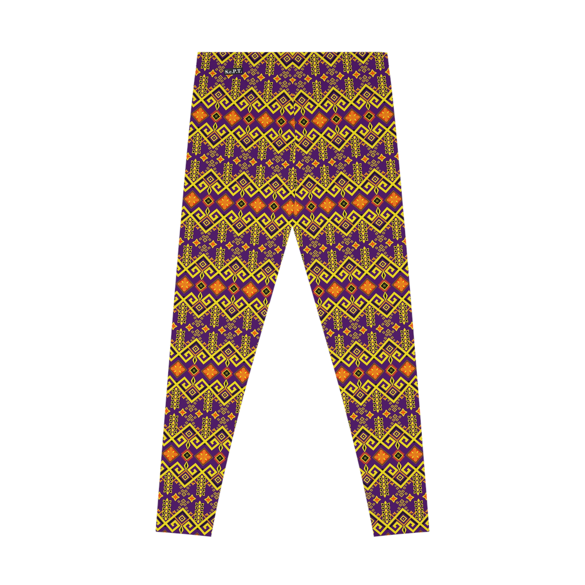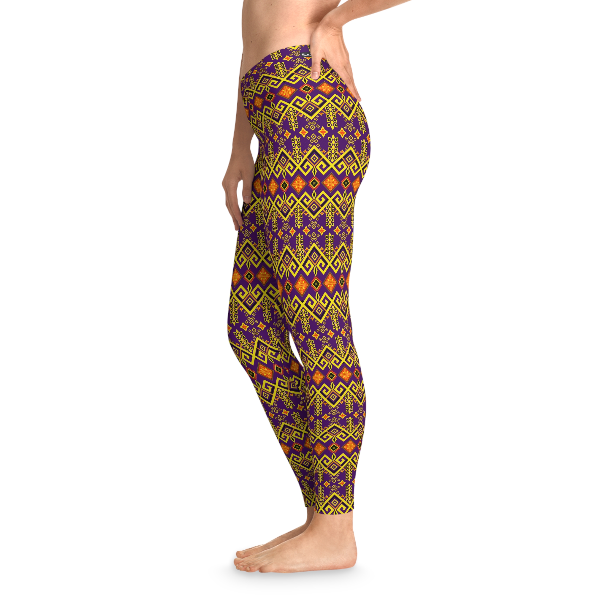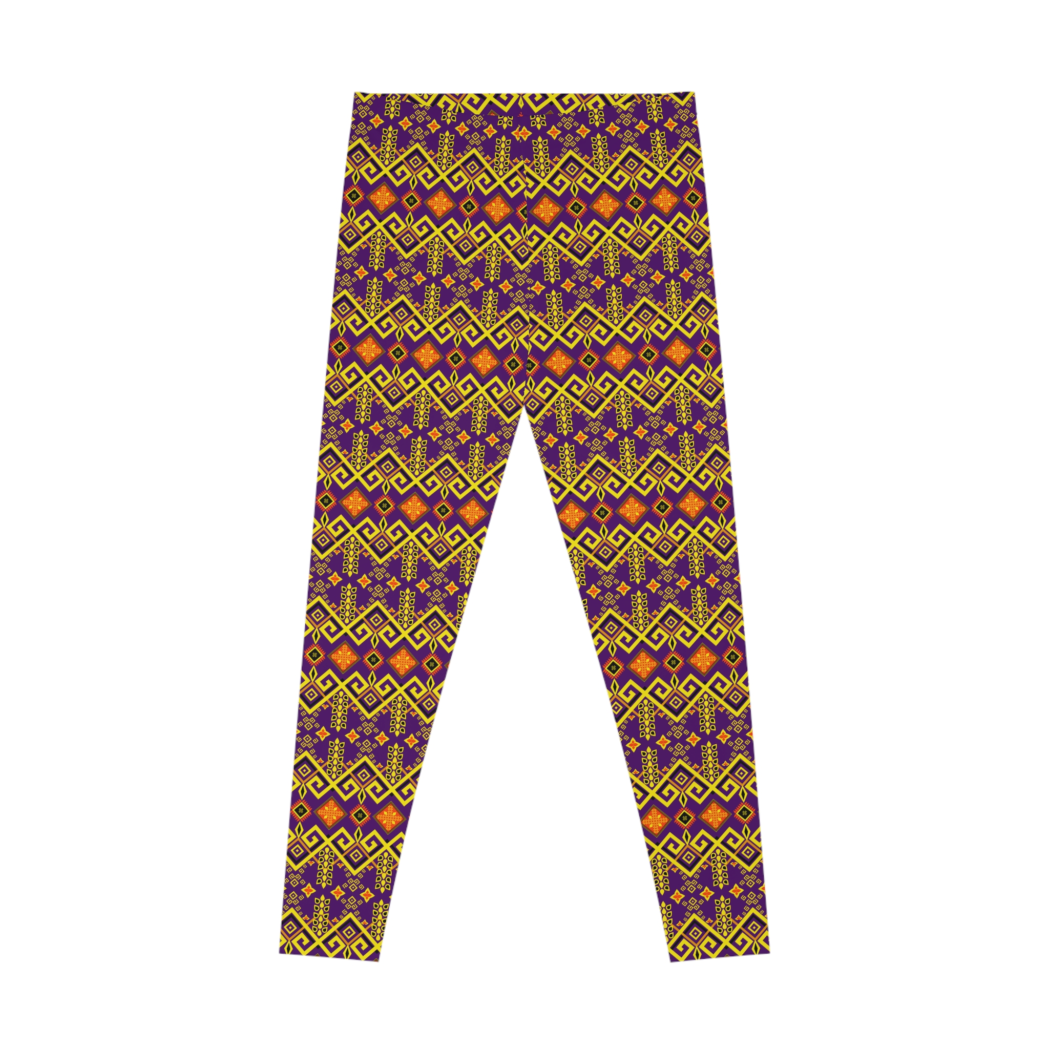Tribal Maze Geometric Gold & Purple Print Stretchy Leggings (S.e.P.T.™)