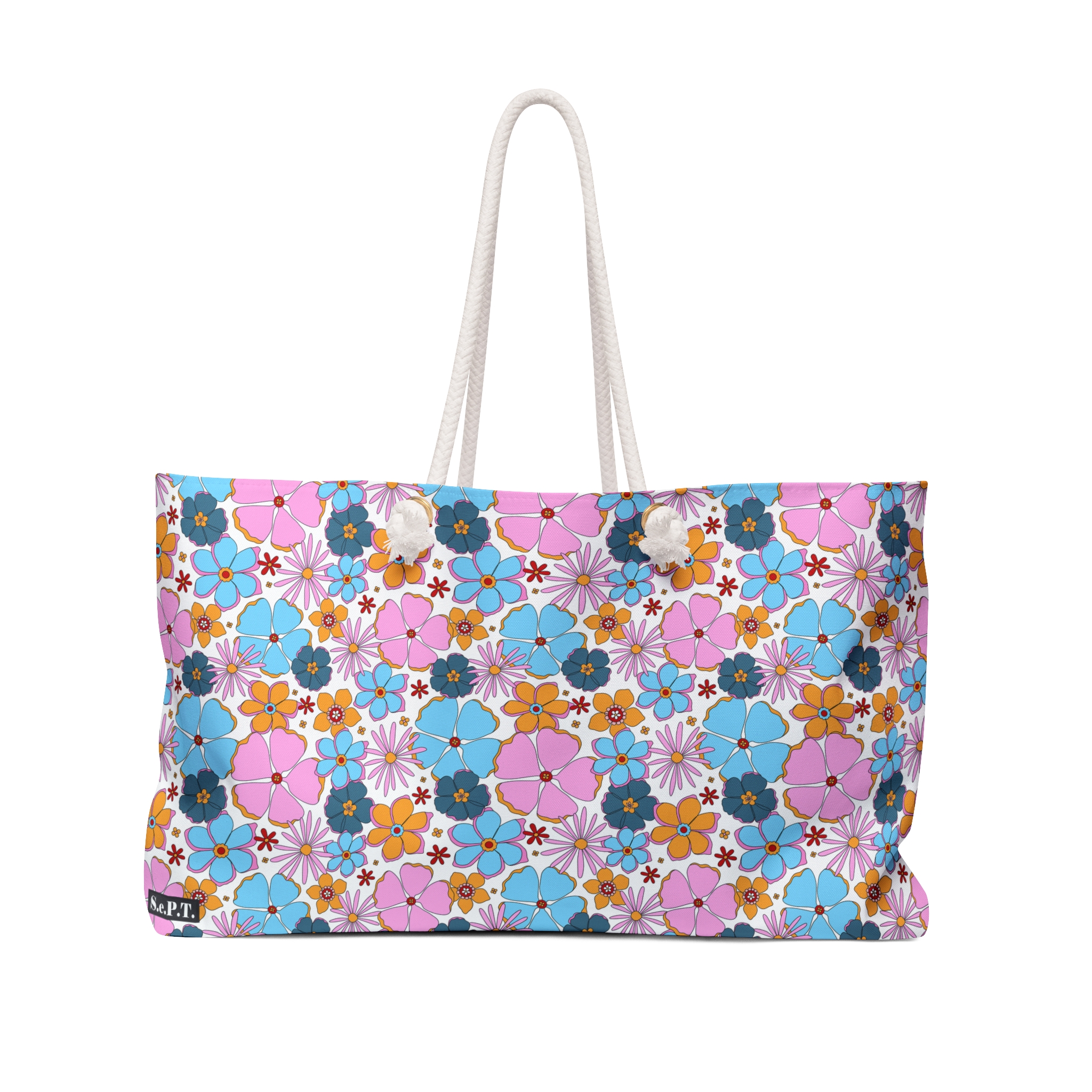 Our oversized Weekender Tote is perfect for your weekend at the beach or in town. The wide-mouthed, durable bag holds a generous amount of personal items and is easily held by its thick rope handles.