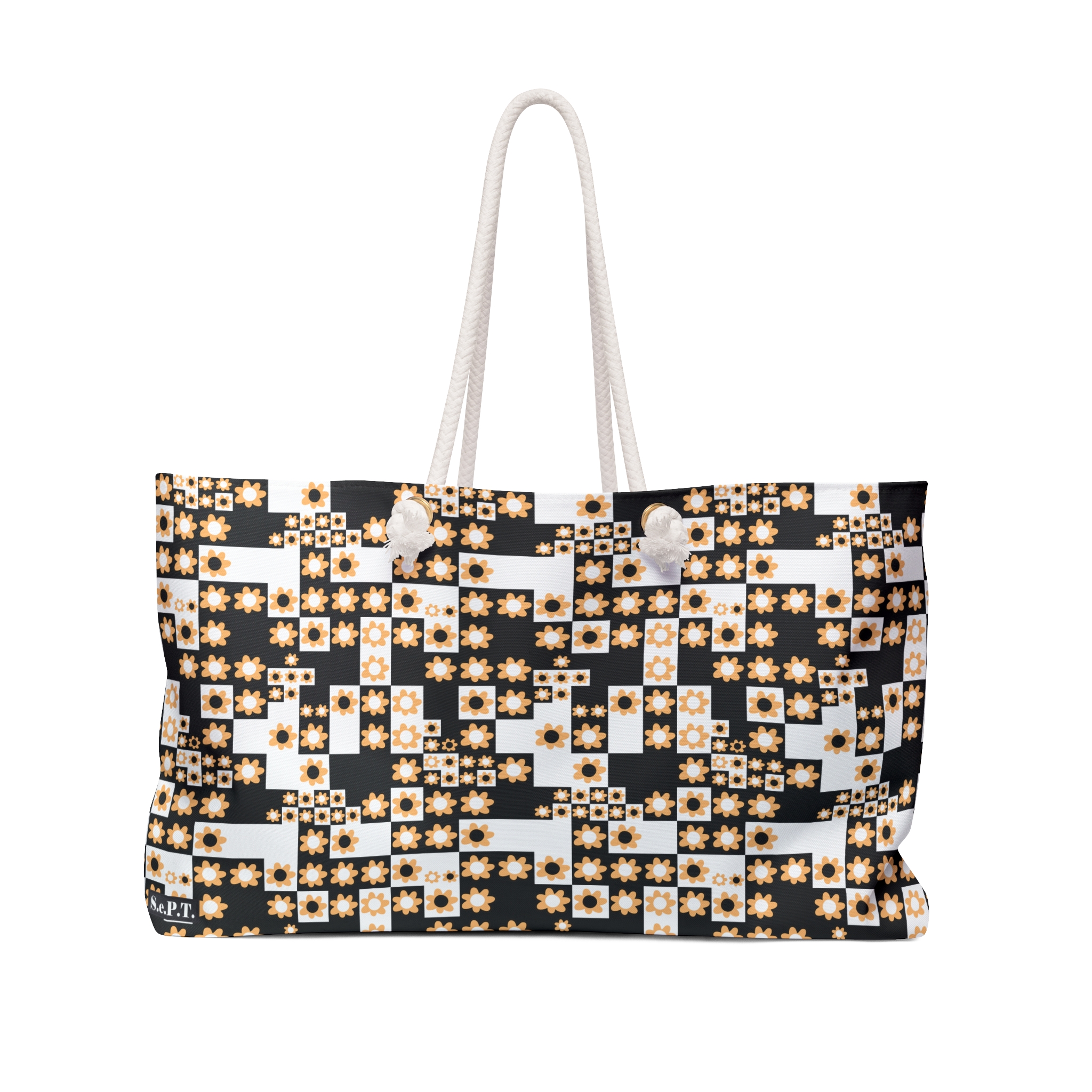 Retro Black & White Optical Flower Weekender Bag (S.e.P.T.™)
