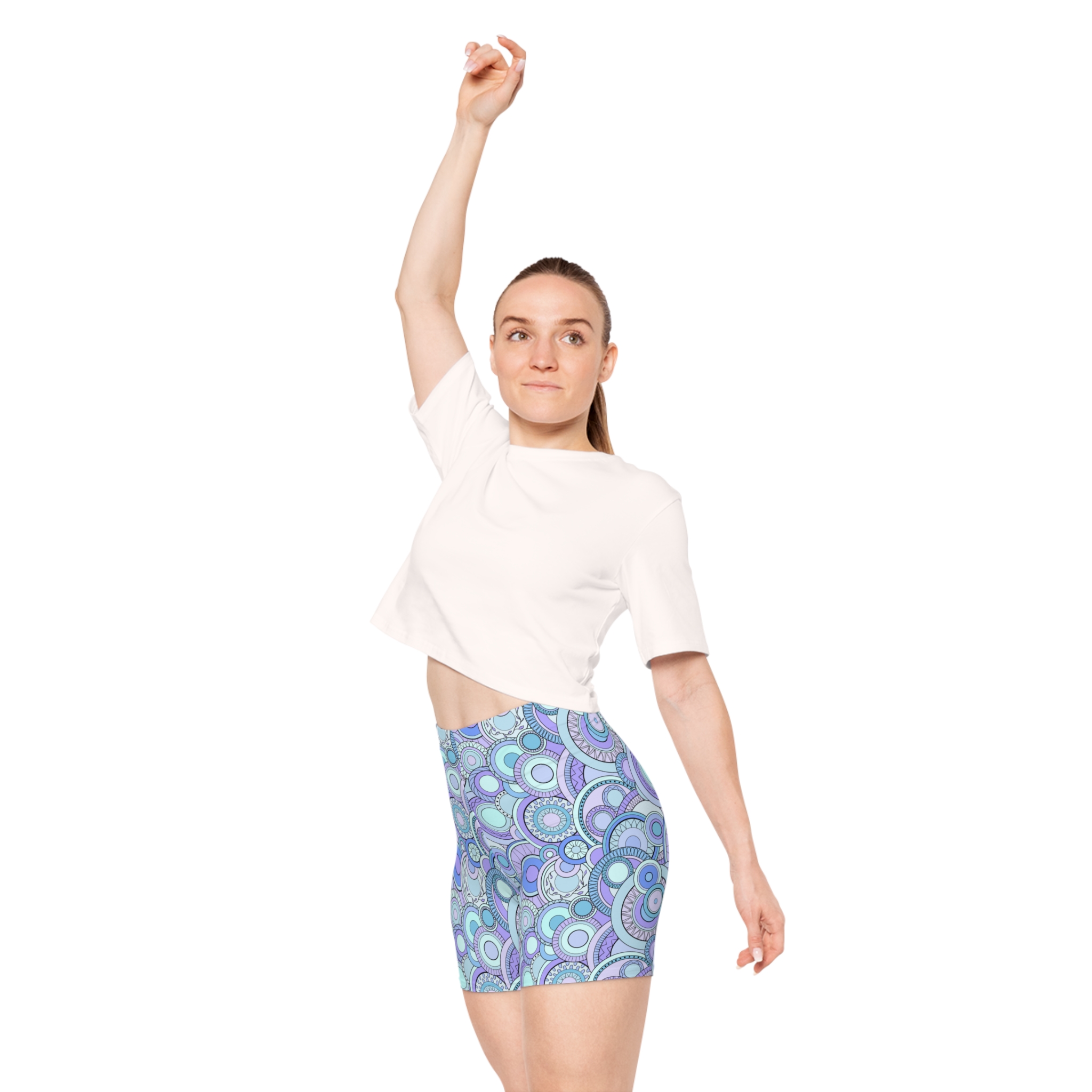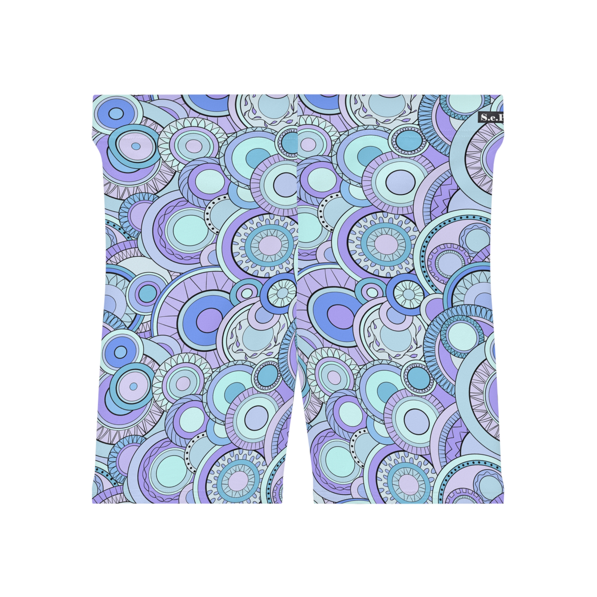 Pale Blue Groovy Swirl Mandala Print Women’s Biker Shorts (S.e.P.T.™)