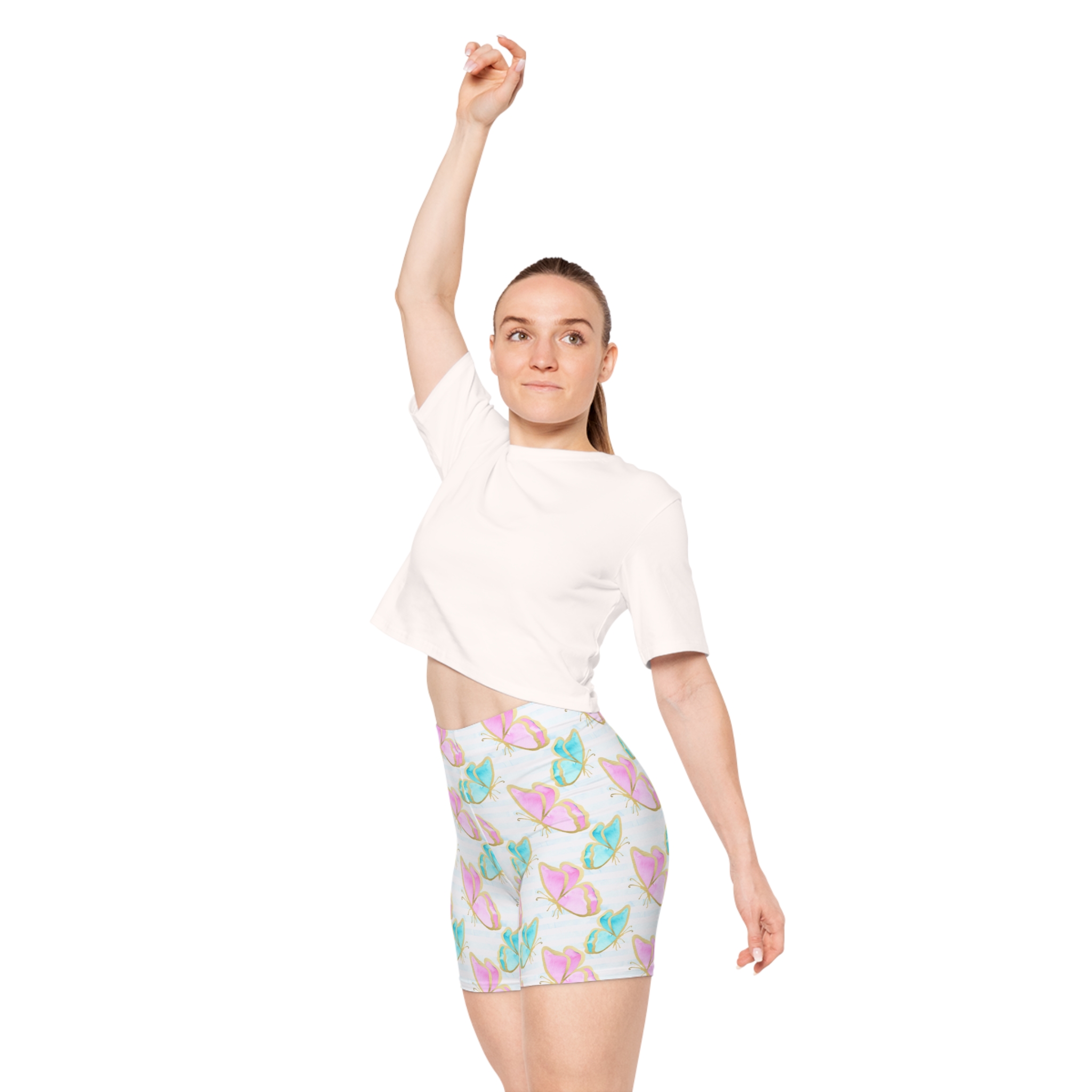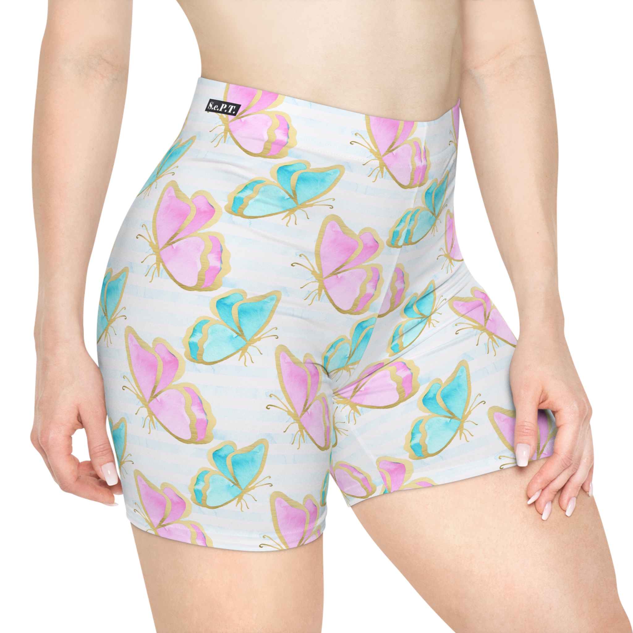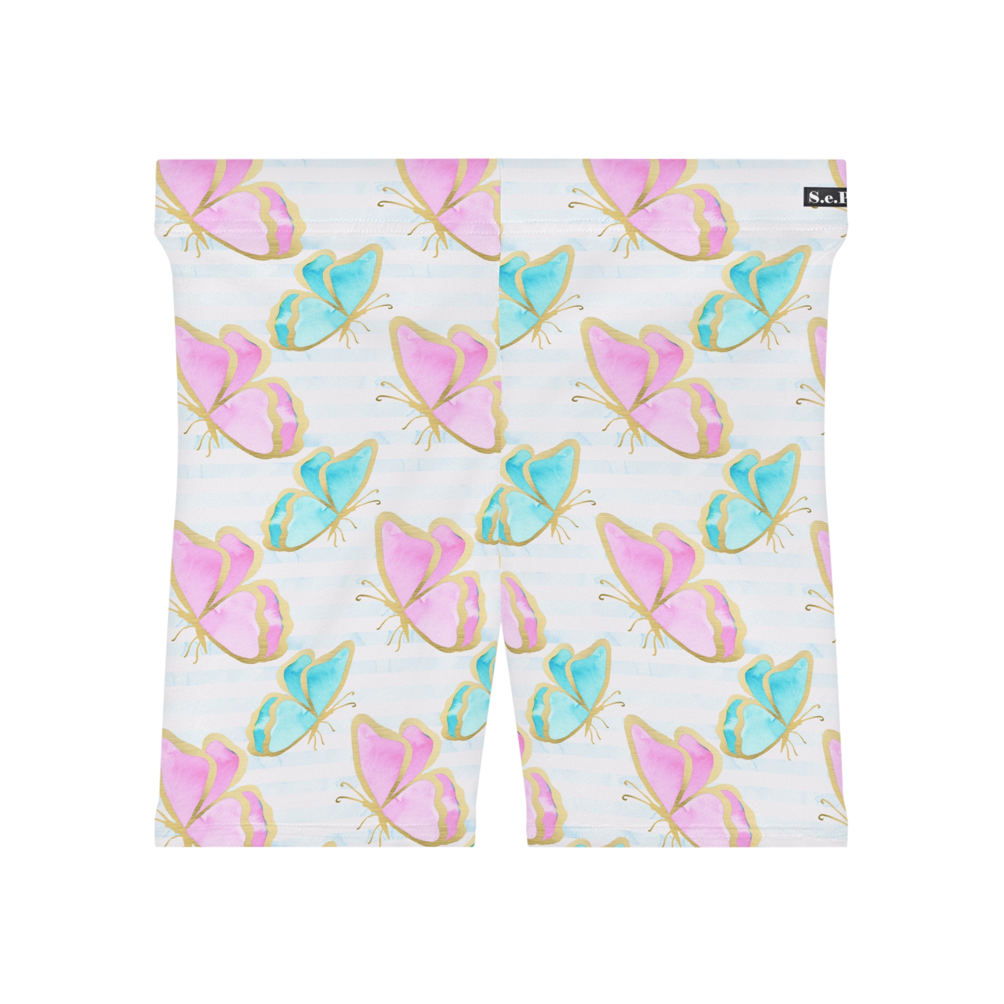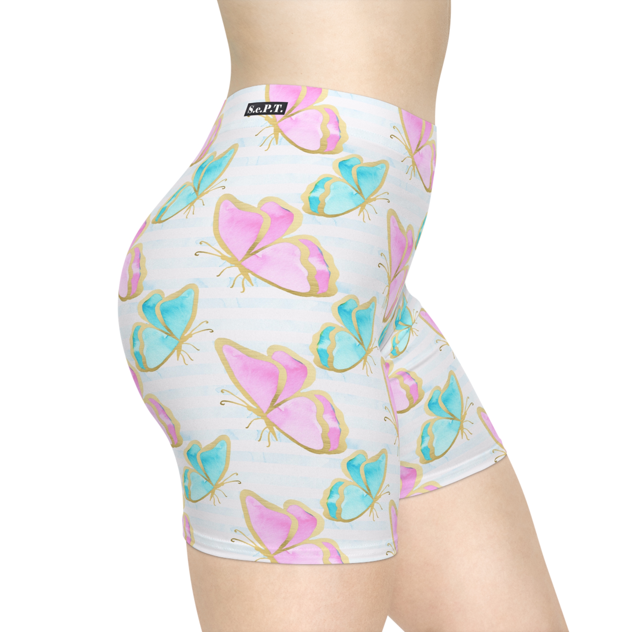 Pastel Gold Trim Butterfly Print Women’s Biker Shorts (S.e.P.T.™)