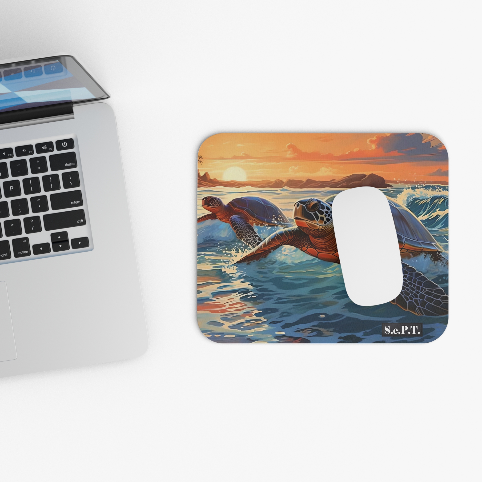 Sunset Sea Turtles Sunrise Ocean – 9×8 Mouse Pad – (S.e.P.T.™)