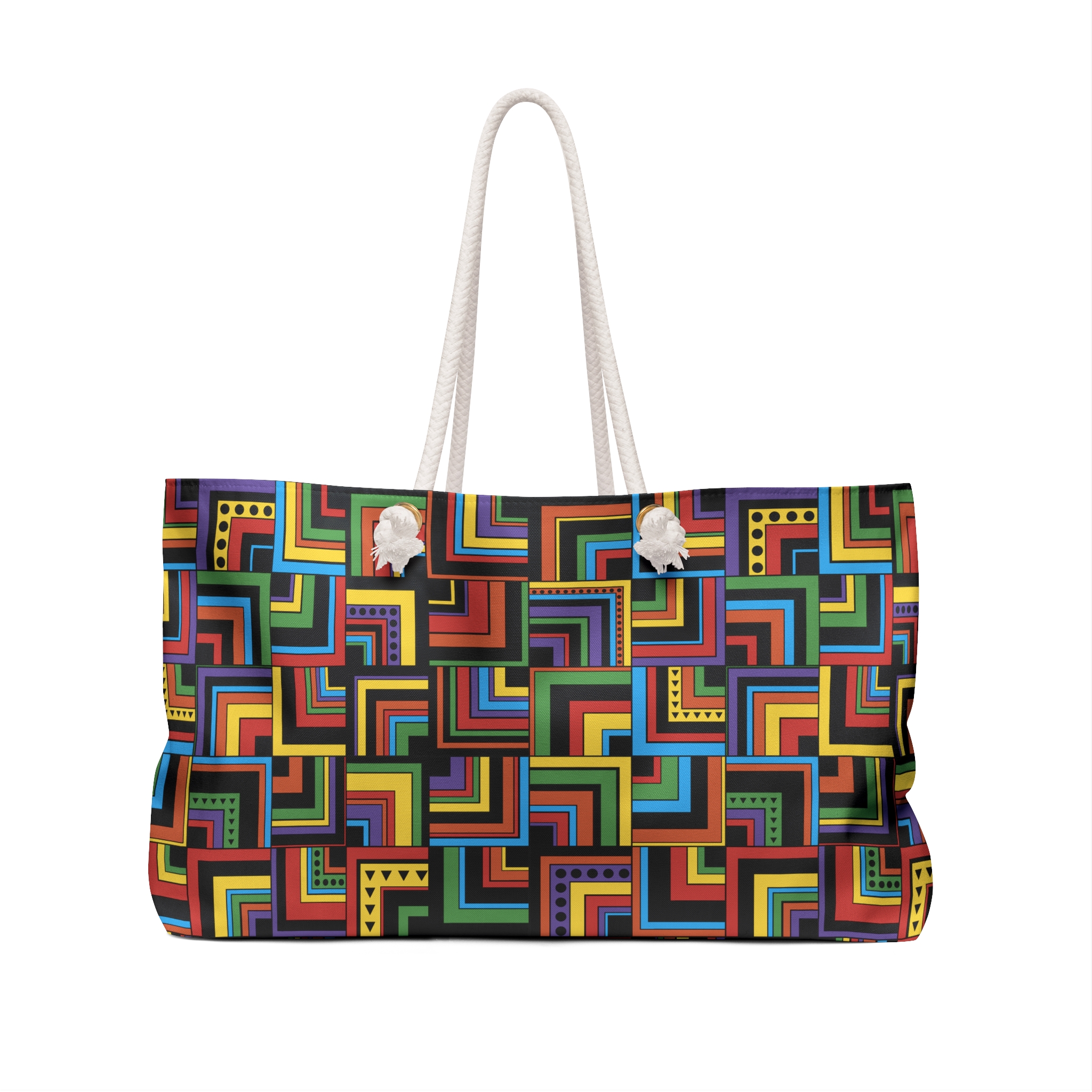 Multi-Color Retro Corner Block Geometric Print Weekender Bag (S.e.P.T.™)