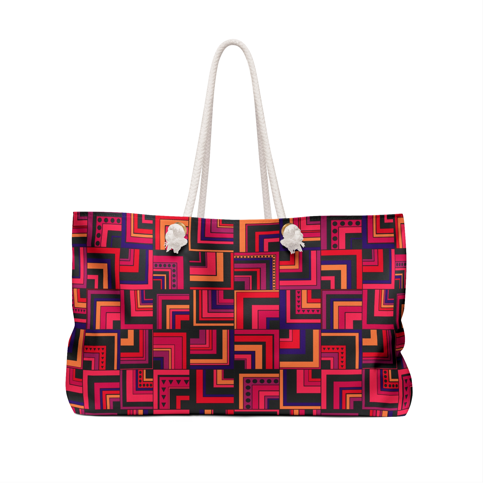 Red Retro Corner Block Geometric Print Weekender Bag (S.e.P.T.™)