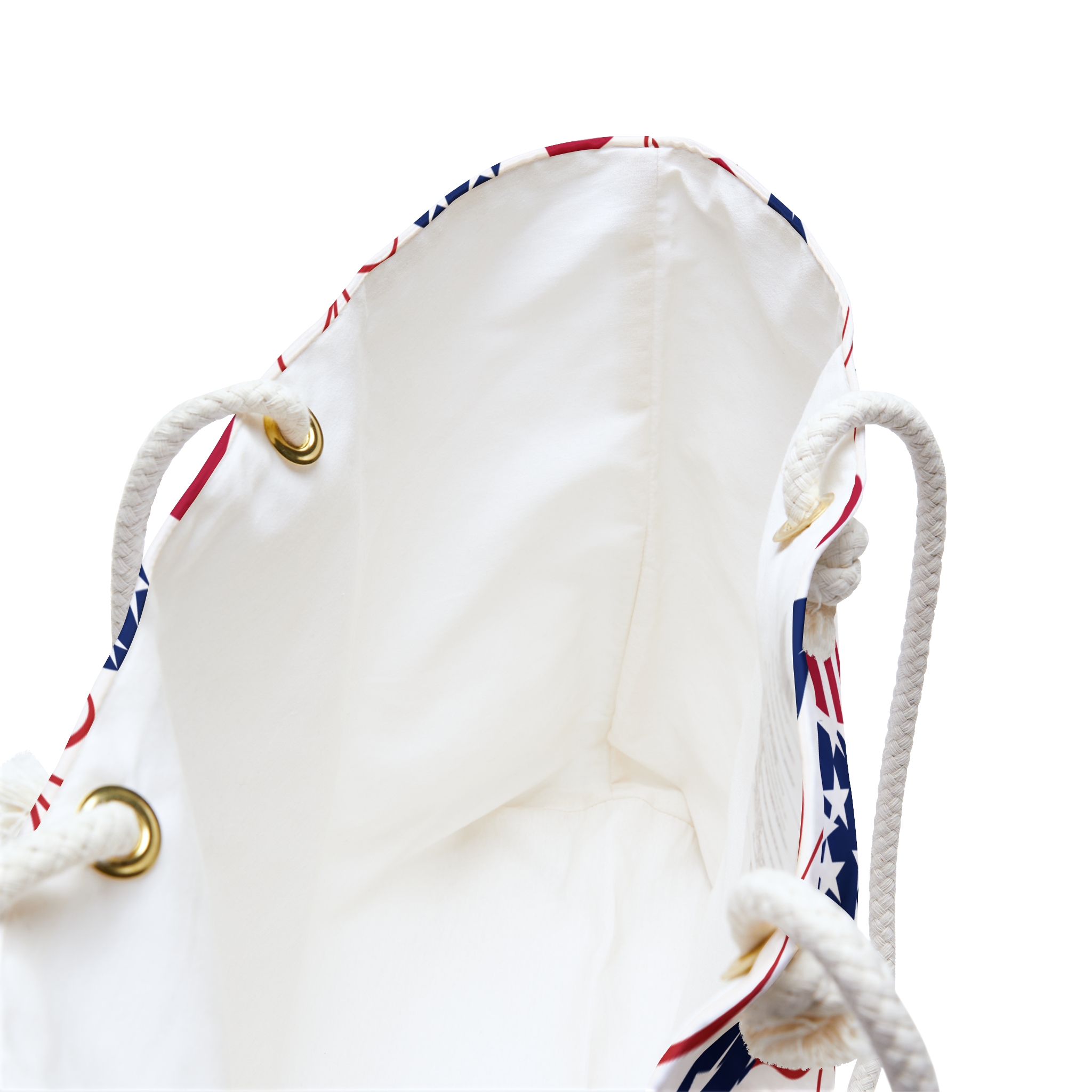Our oversized Weekender Tote is perfect for your weekend at the beach or in town. The wide-mouthed, durable bag holds a generous amount of personal items and is easily held by its thick rope handles.
