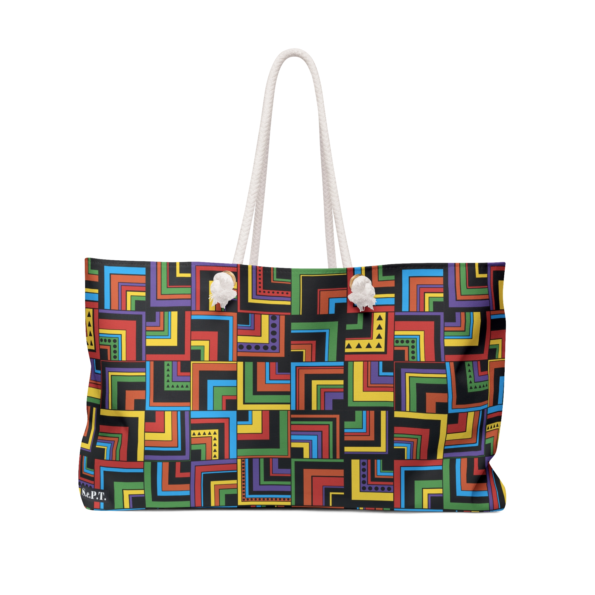 Multi-Color Retro Corner Block Geometric Print Weekender Bag (S.e.P.T.™)