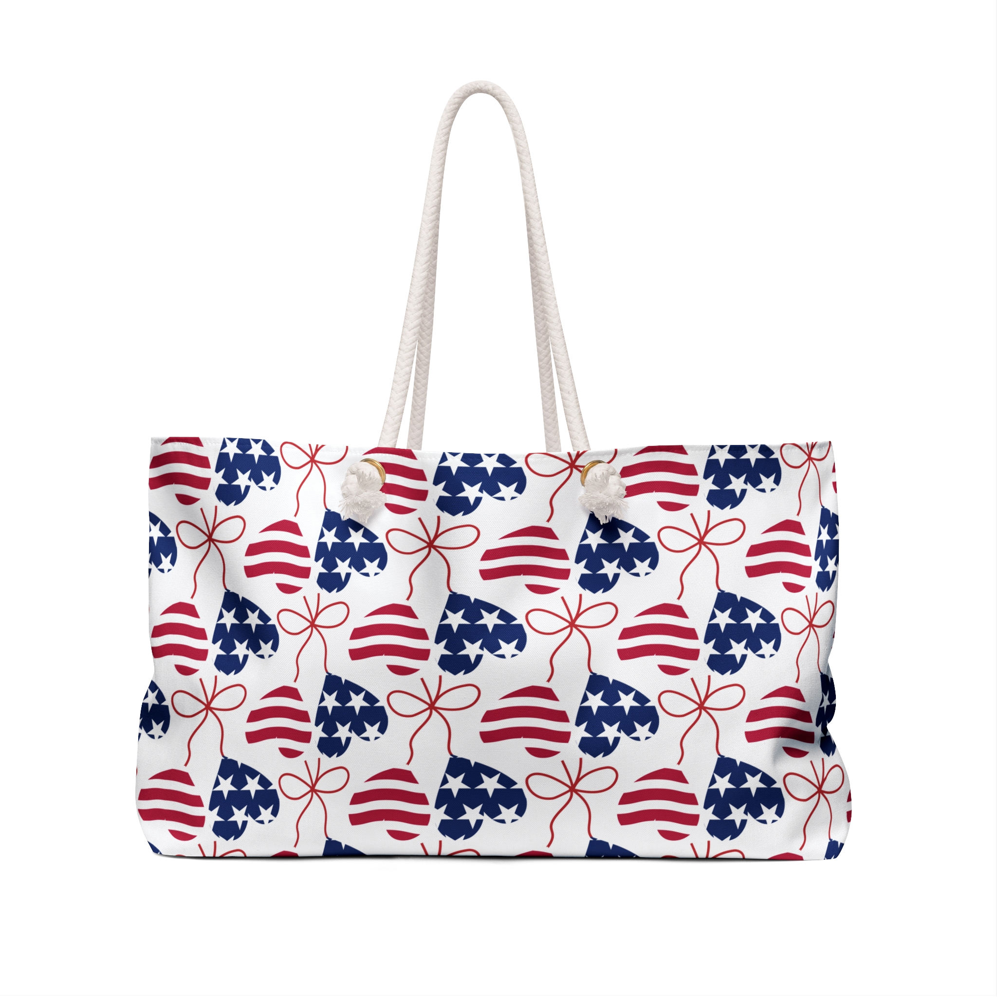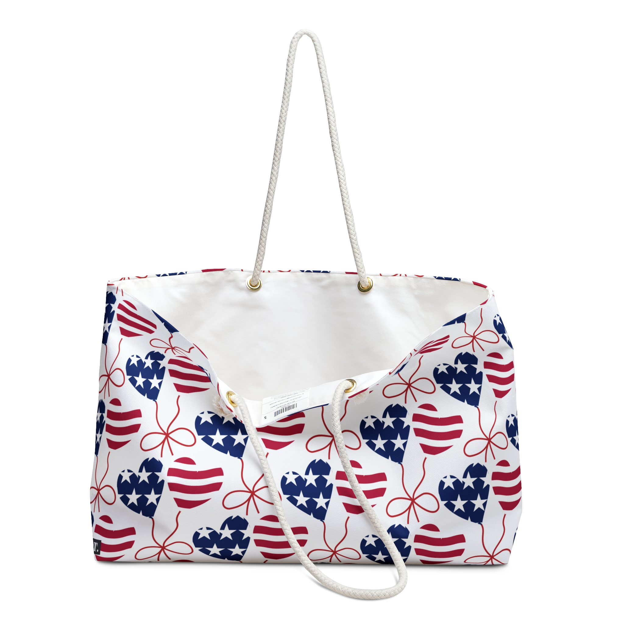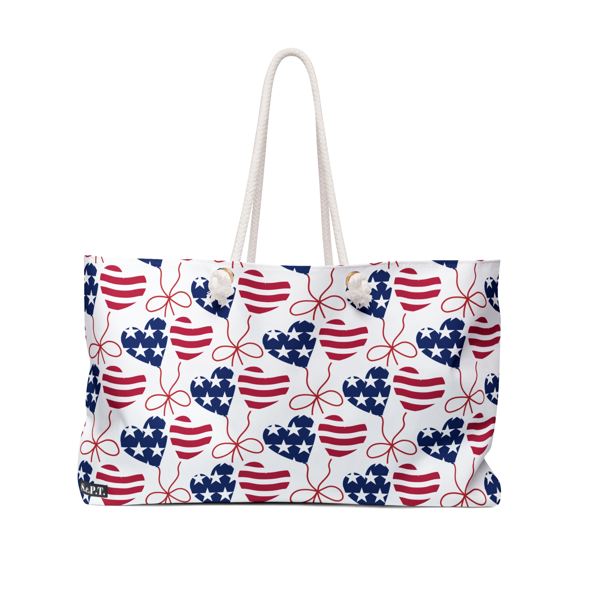 Our oversized Weekender Tote is perfect for your weekend at the beach or in town. The wide-mouthed, durable bag holds a generous amount of personal items and is easily held by its thick rope handles.